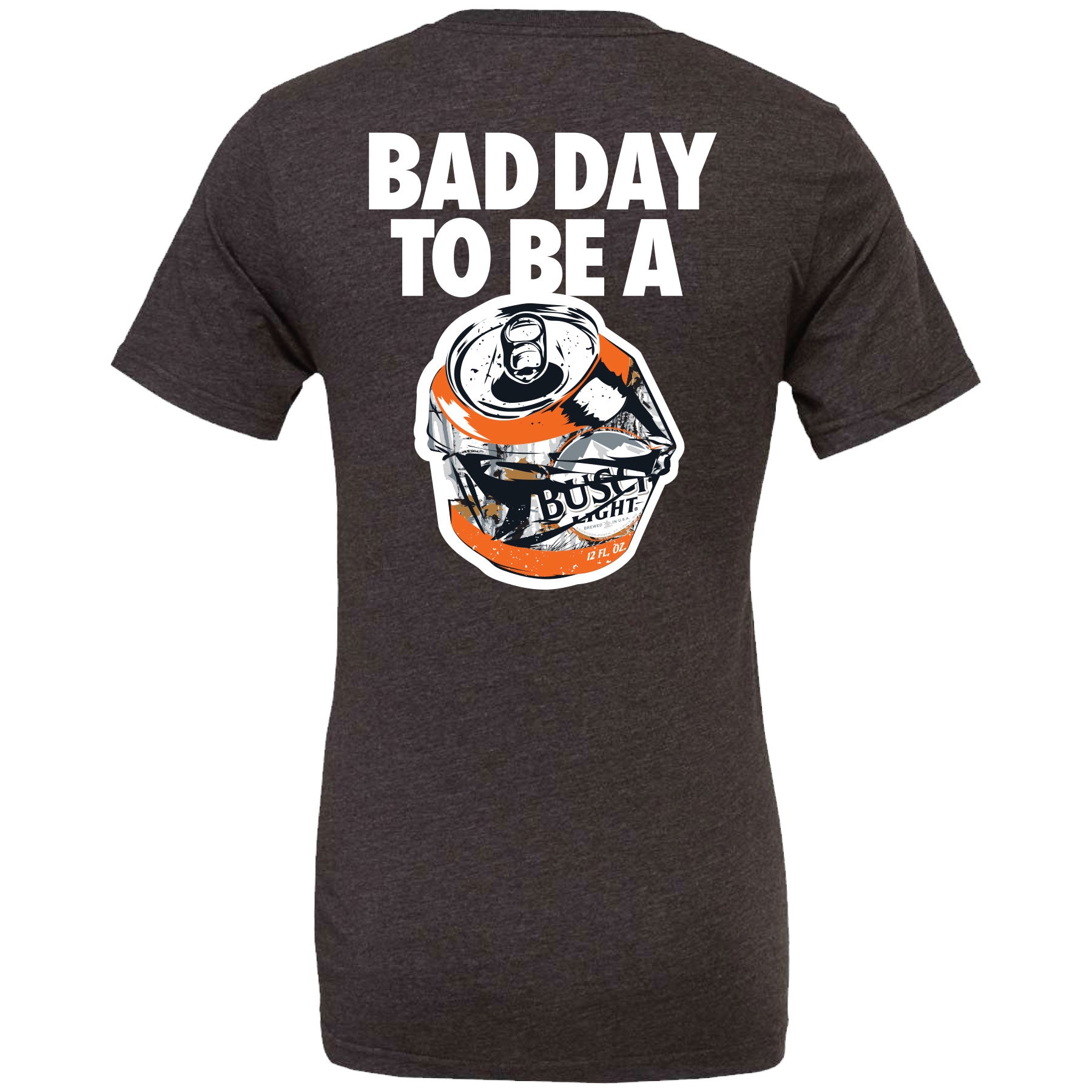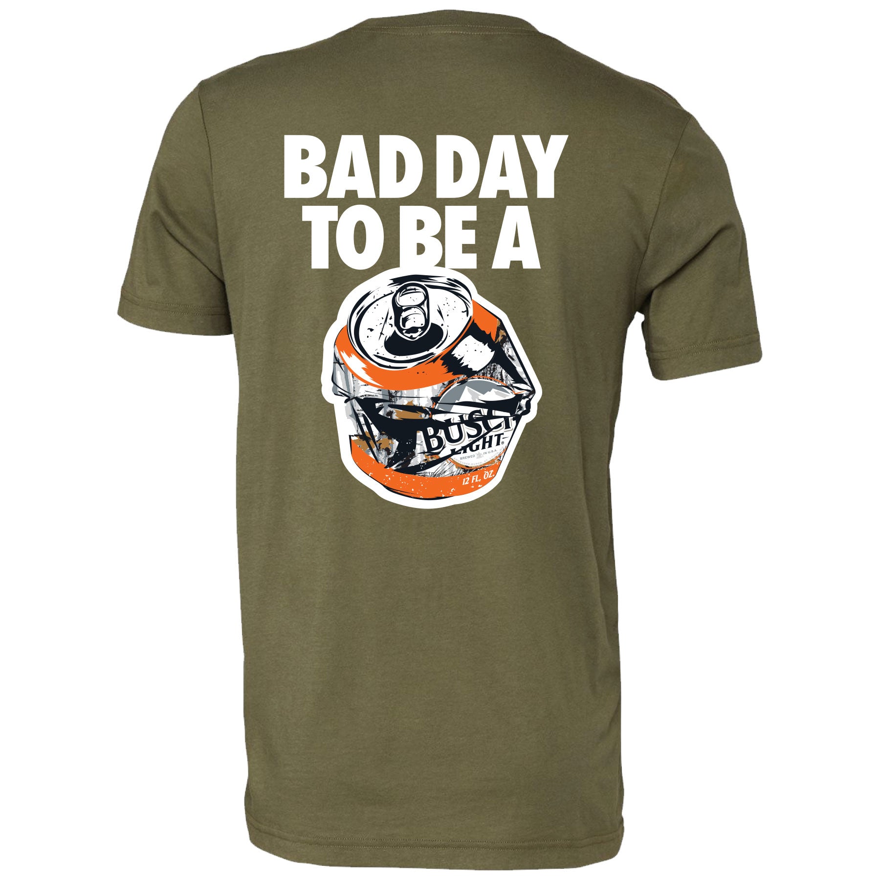 Introducing the Busch Light Bad Day Hunting T-shirt, the perfect addition to any hunter's wardrobe! Featuring the iconic Busch Light logo and "BAD DAY TO BE A" slogan, this t-shirt is sure to show off your love for both hunting and the great taste of Busch Light. Officially licensed Busch Light® clothing & apparel.