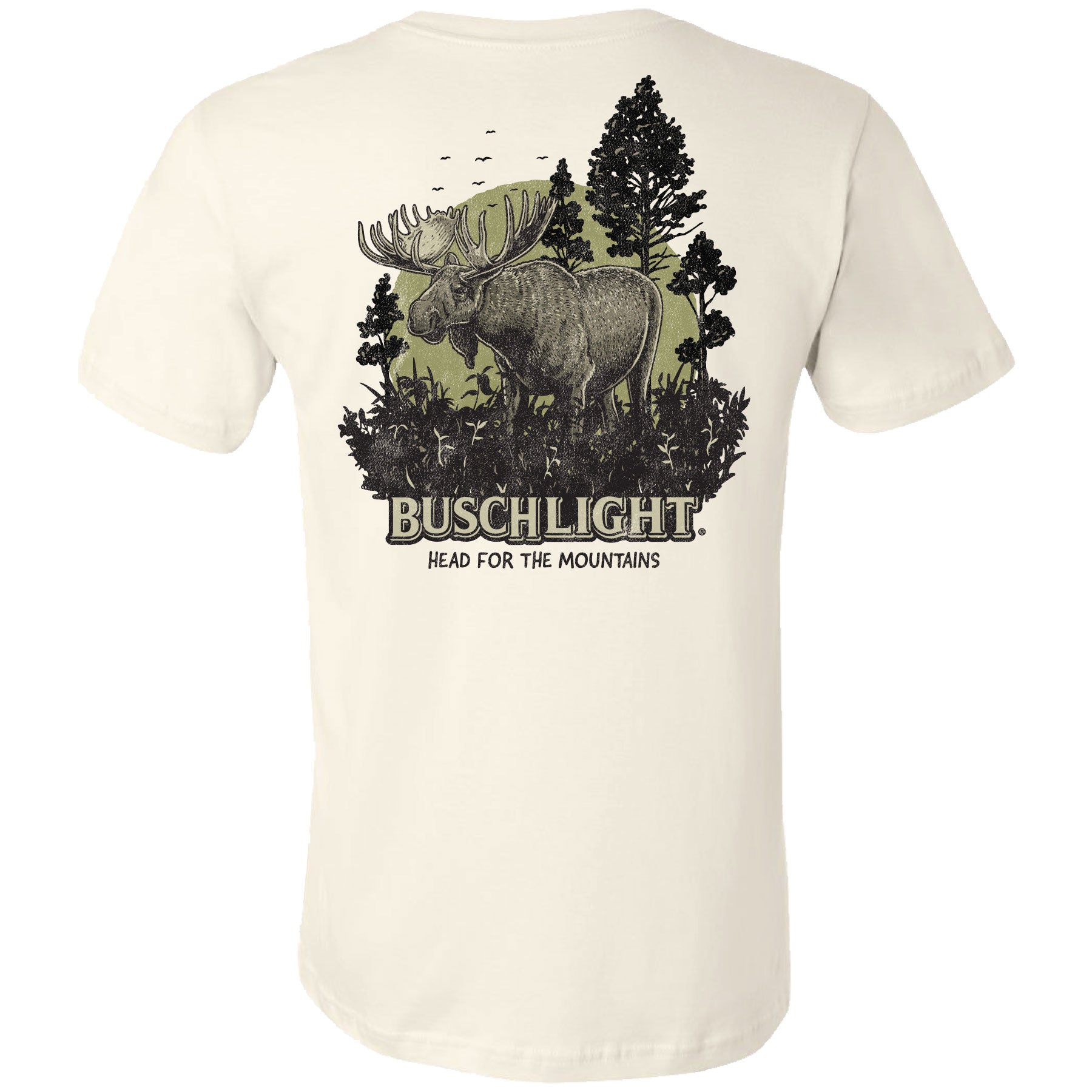 Featuring a stunning moose in a vibrant sunset scene, this Busch Light t-shirt is perfect for any wildlife lover. Made from high-quality materials, this 2-sided shirt is comfortable and durable. Show off your love for nature and your favorite beer with this unique and eye-catching design. Officially licensed Busch Light® clothing & apparel.