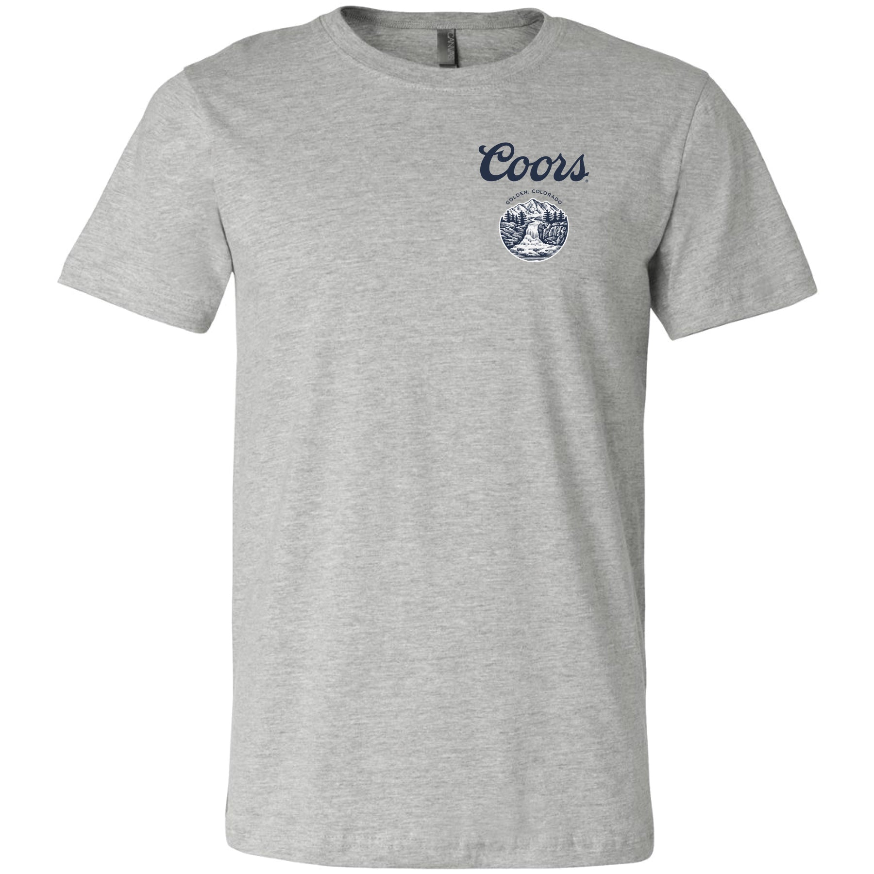 Coors Banquet Waterfall 2-Sided T-Shirt. The Coors Waterfall Logo is featured on the Left Chest and the full Coors Banquet/Waterfall Logo is on the back. Officially licensed Coors Banquet® product.