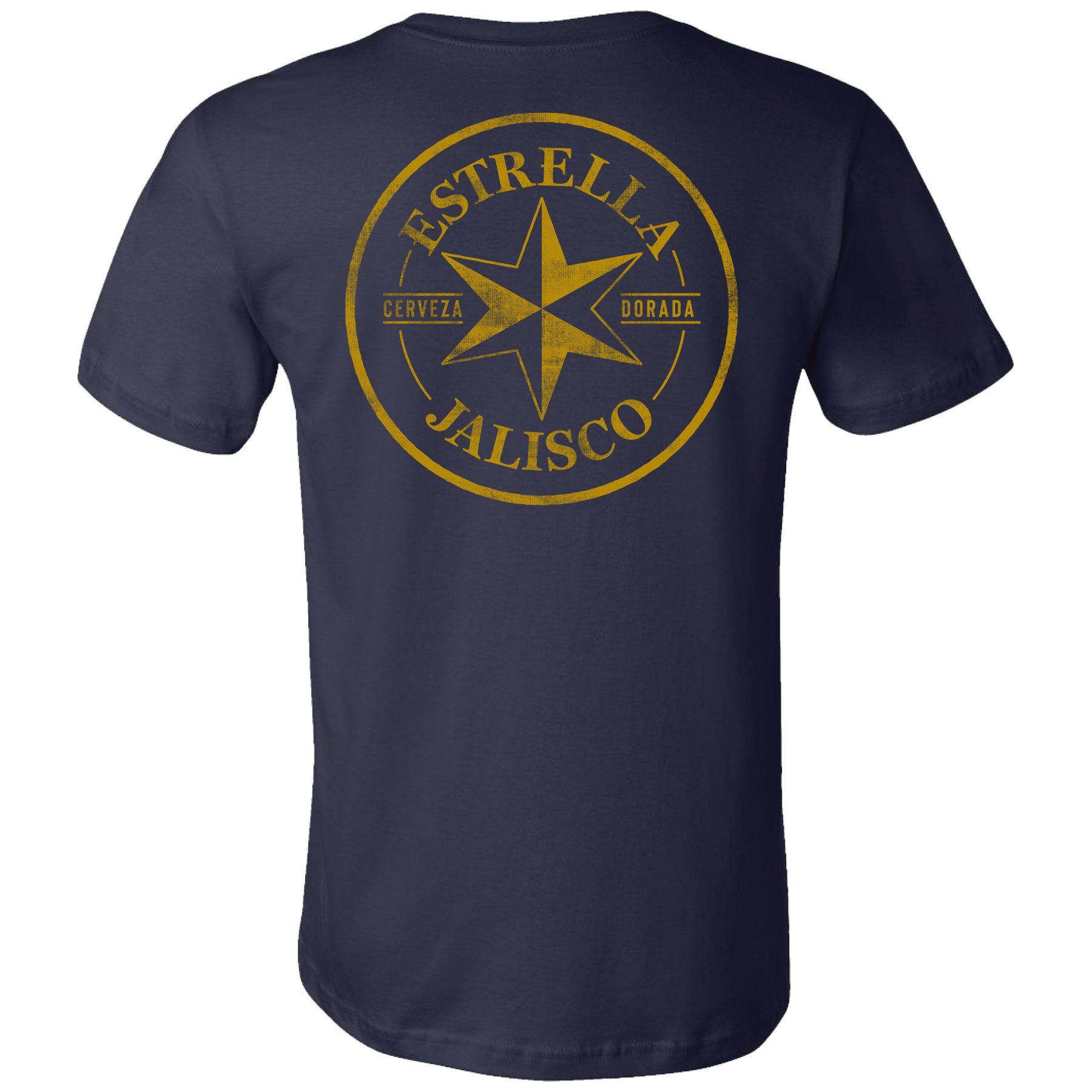 Show off your love for Estrella Jalisco with this stylish 2-sided T-Shirt featuring the iconic crest design. Made with high-quality materials, this T-Shirt is both comfortable and durable, making it the perfect addition to any wardrobe. Represent your favorite beer in style with this must-have T-Shirt. Officially licensed Estrella Jalisco® clothing & apparel.