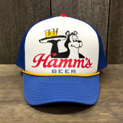 Introducing the Hamm's Bear Beer Tray Jumbo Print Foam Trucker Hat - a must-have for any beer lover. Show off your love for Hamm's and the iconic bear with this foam trucker hat featuring the classic beer tray design. Perfect for keeping you cool and stylish while enjoying your favorite brew. Officially licensed Hamm's® clothing & apparel.
