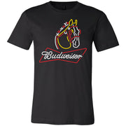 The Neon Budweiser Clydesdales T-Shirt features a vibrant neon Budweiser logo and a majestic Clydesdale horse head on the front. Show off your love for Budweiser and these iconic horses with this eye-catching shirt. A must-have for any fan or collector. Officially licensed Budweiser® apparel.