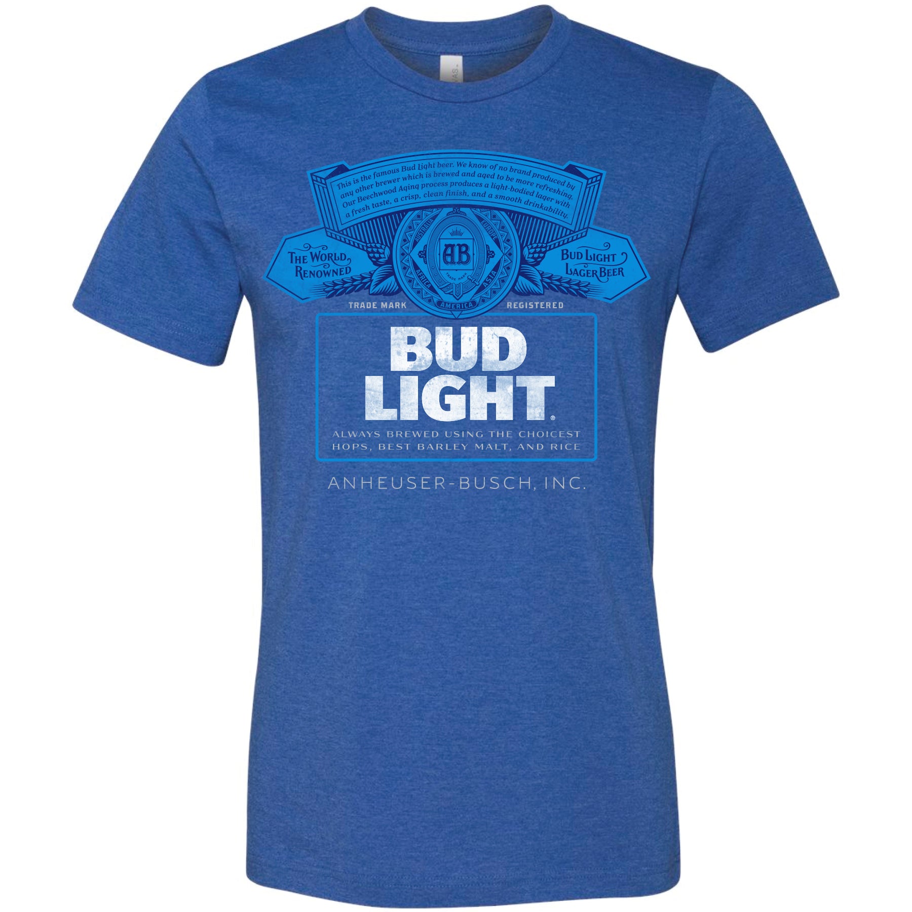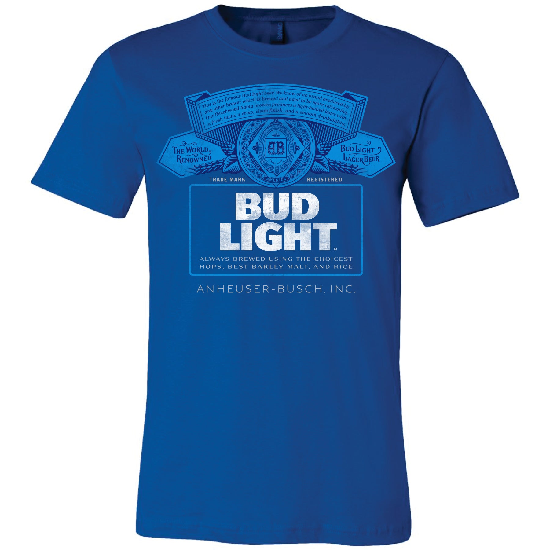 The Bud Light Label T-Shirt is a must-have for any beer lover. Crafted with a soft and comfortable material, this shirt proudly displays the iconic Bud Light label. Show off your love for the crisp and refreshing taste of Bud Light with this stylish and unique t-shirt. Officially licensed Bud Light® clothing & apparel.
