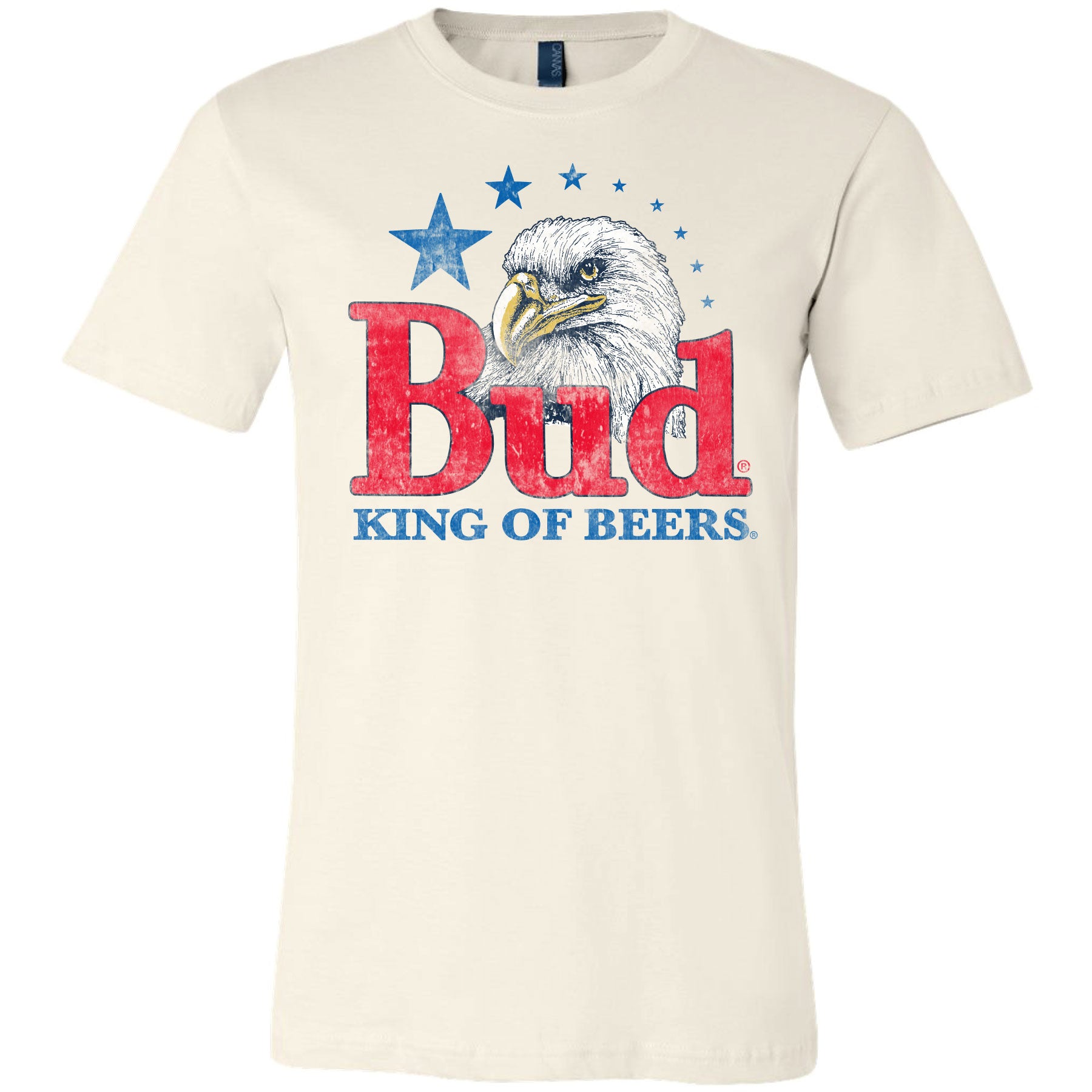Represent your love for the classic American lager with the Budweiser Eagle & Stars T-shirt. Made of soft, comfortable material, this shirt features the iconic Budweiser eagle and stars design. Perfect for any beer lover or patriotic individual. Cheers to a timeless look. Officially licensed Budweiser® apparel.