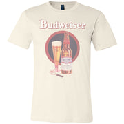 This Budweiser T-shirt showcases a vintage design of the iconic brand's advertisement. Made from quality materials, this shirt combines style and nostalgia for a unique and timeless look. Perfect for any Budweiser fan, this vintage ad t-shirt is a must-have for your collection. Cheers to classic Americana! Officially licensed Budweiser® clothing, apparel & merch.