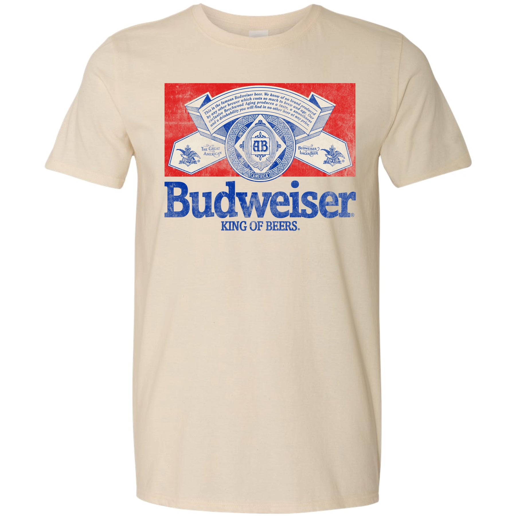 This Budweiser Vintage Half Label T-Shirt is a timeless classic for any beer enthusiast. Made with premium materials, this shirt features the iconic half label design of Budweiser. Show off your love for the King of Beers with this stylish and comfortable t-shirt. Officially licensed Budweiser® apparel.