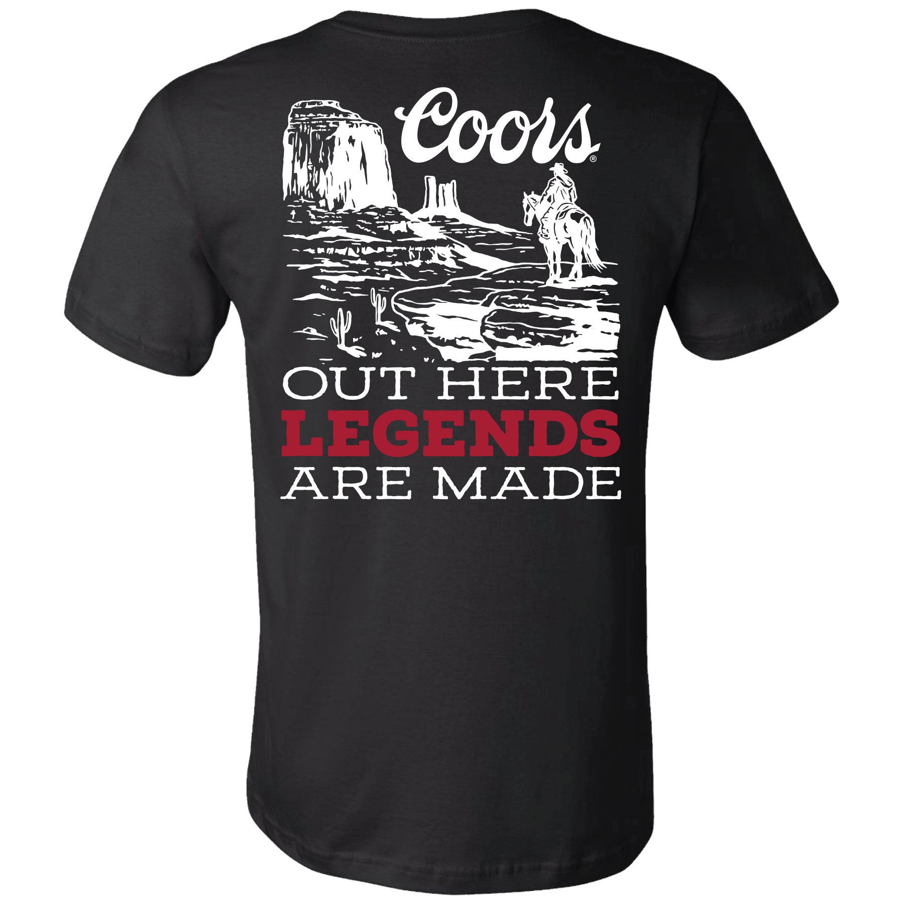 Saddle up in style with this Coors Banquet rodeo-inspired tee featuring a striking graphic of a cowboy astride his horse, gazing across an expansive western landscape. The iconic Coors logotype anchors the left chest, blending classic Americana with authentic rodeo spirit. Perfect for fans who appreciate heritage brewing and the rugged appeal of the Old West, this two-sided design captures the essence of frontier adventure. Premium comfort meets timeless aesthetic in a piece that celebrates both beer culture and western tradition. Officially licensed Coors Banquet® clothing & apparel.