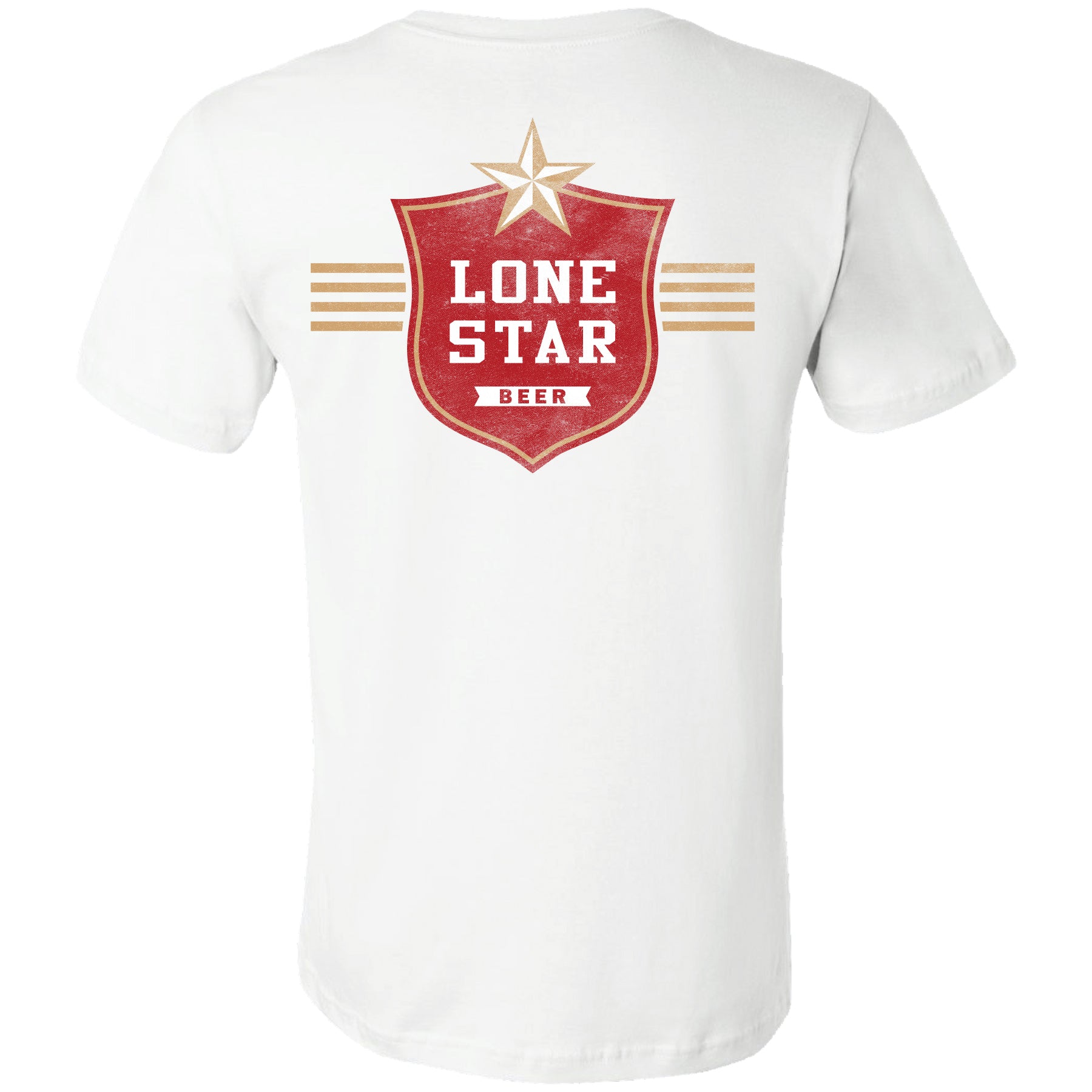 This vintage Lone Star T-shirt features the iconic label that has been associated with quality and craftsmanship. Made with soft and durable materials, this shirt showcases Texas pride and nostalgia. Perfect for any casual occasion. Officially licensed Lone Star® apparel.