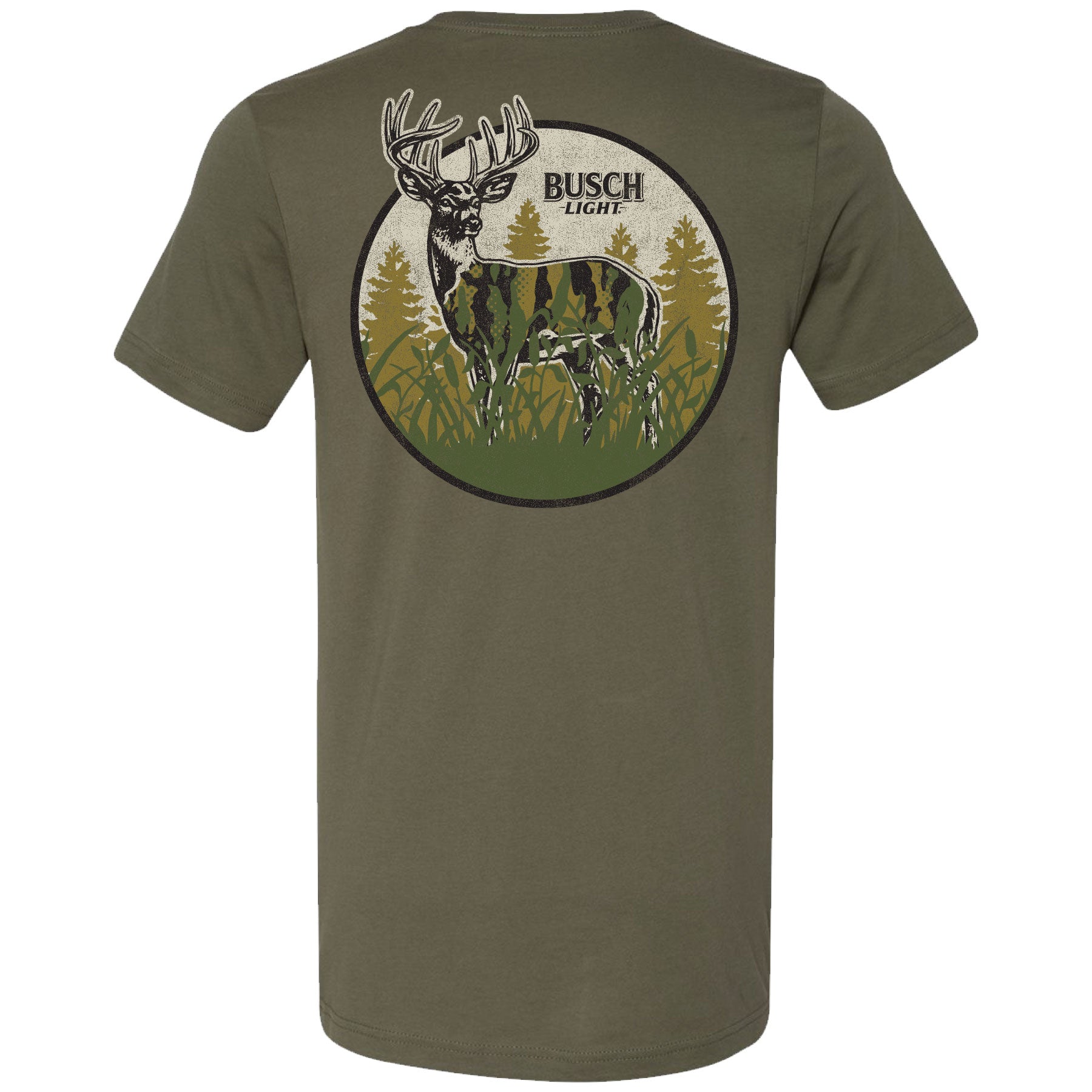 Show your passion for the outdoors and Busch Light with this expertly designed t-shirt. Featuring the classic Busch Light logo on the left chest and a distinctive 2025 can camo circle design highlighting a stately buck, this shirt combines authentic hunting style with brand pride. Crafted for comfort and durability, it’s perfect for both rugged adventures and casual wear. Officially licensed Busch Light® clothing, apparel & merch.