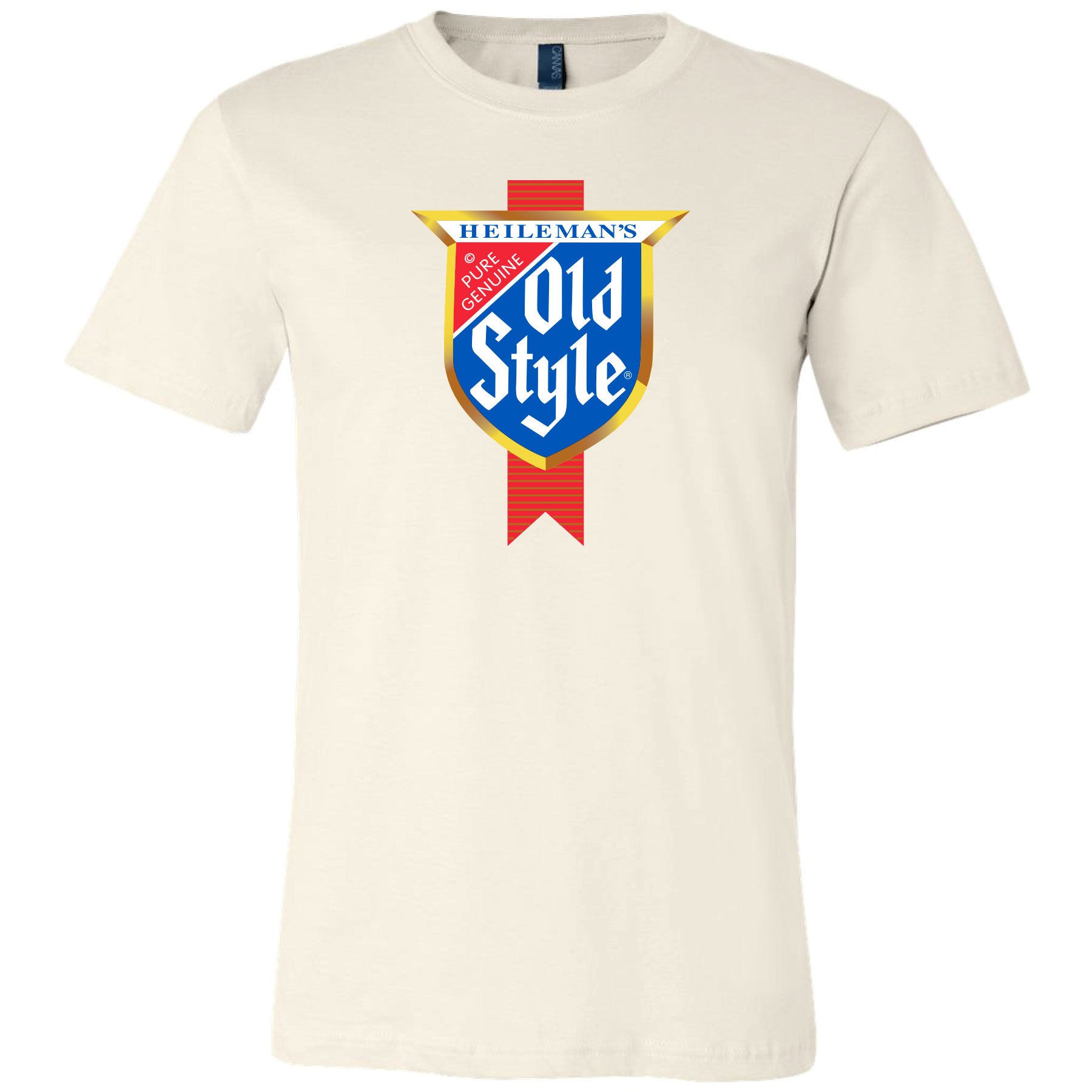 The Old Style Ribbon Shield Logo T-shirt boasts the iconic vintage ribbon shield logo, making it a must-have for any fan or collector. This classic t-shirt offers both style and comfort. Show off your love for the brand with this timeless piece. Officially licensed Old Style® clothing & apparel.