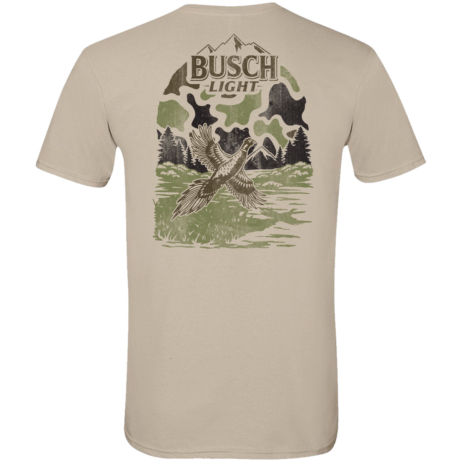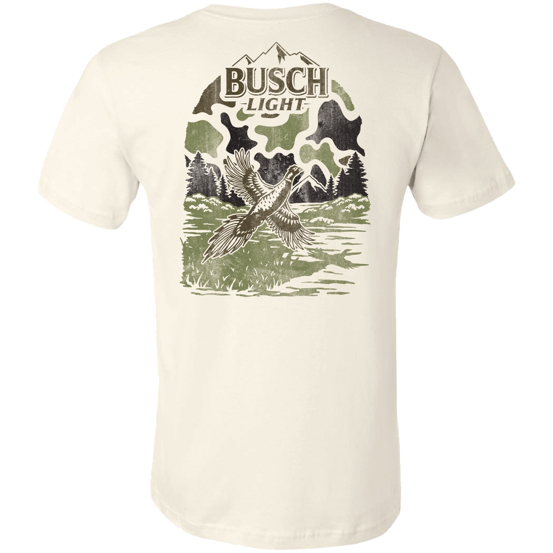 Experience the great outdoors in style with our Busch Light 2024 Can Camo Wildlife Pheasant Scene 2-sided T-shirt. Featuring a stunning pheasant scene on the back with the iconic Busch Light left chest, this shirt is the perfect addition to any nature enthusiast's wardrobe. Made from durable and comfortable materials, it's the ideal choice for any outdoor adventure. Officially licensed Busch Light® clothing & apparel.