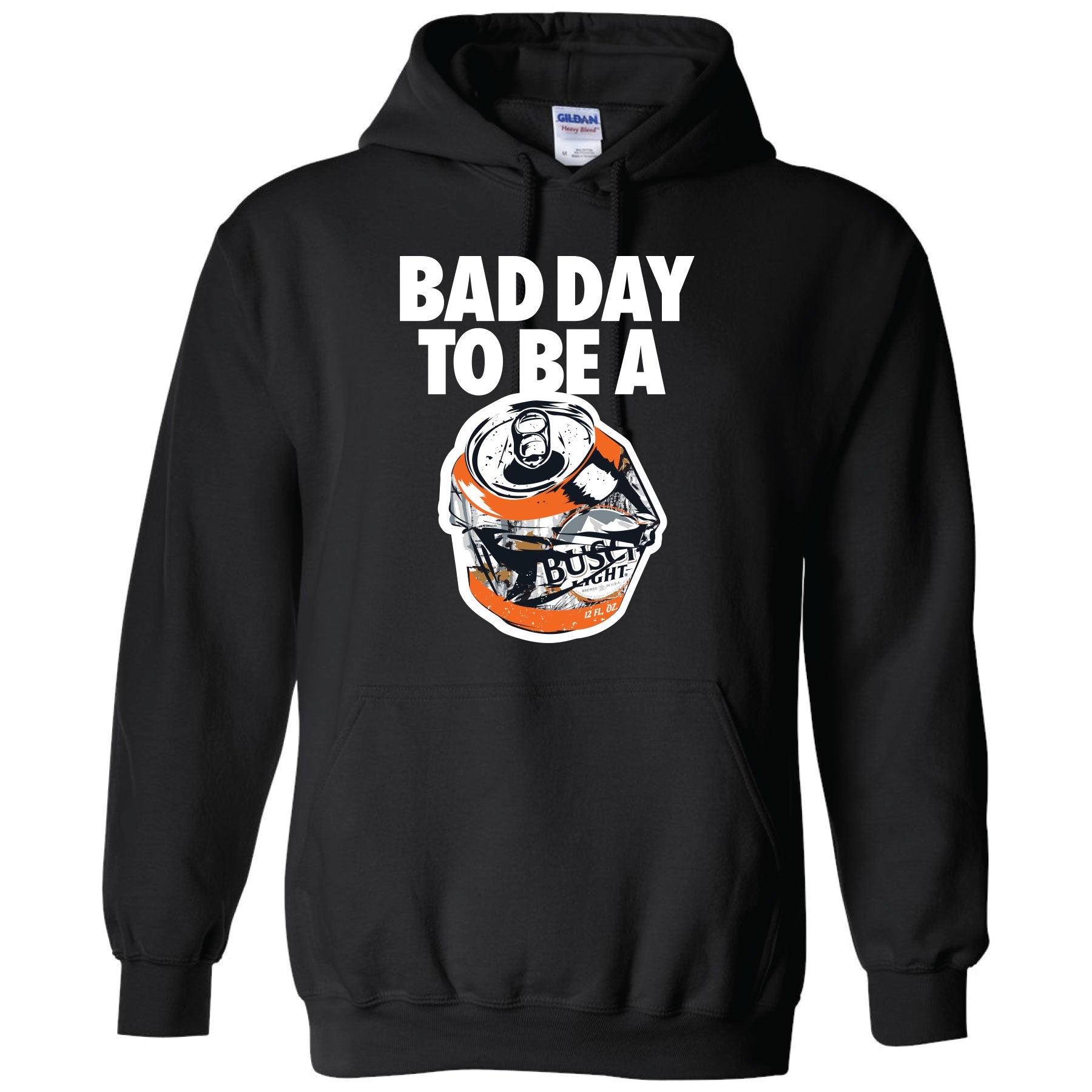 Introducing the Busch Light Bad Day Hunting Hooded Sweatshirt, the perfect addition to any hunter's wardrobe! Featuring the iconic Busch Light logo and "BAD DAY TO BE A" slogan, this hoody is sure to show off your love for both hunting and the great taste of Busch Light. Officially licensed Busch Light® clothing & apparel.