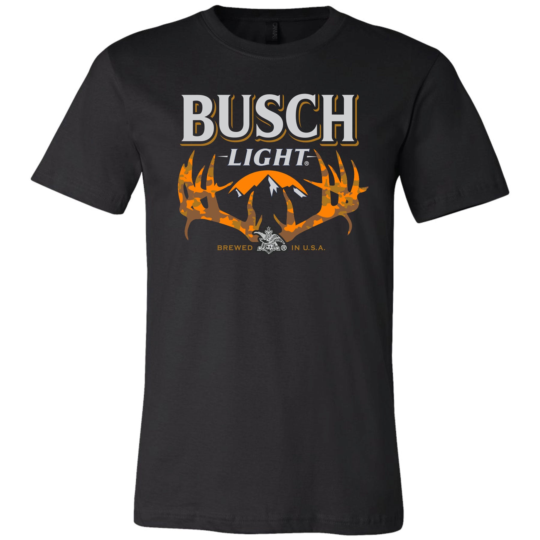 Show off your love for Busch Light with our Camo Antlers T-shirts! Made with high-quality materials, these shirts boast a unique design that will catch anyone's eye. Perfect for any occasion, this shirt is a must-have for any beer enthusiast. Grab yours now and stand out from the crowd! Officially licensed Busch Light® clothing & apparel.