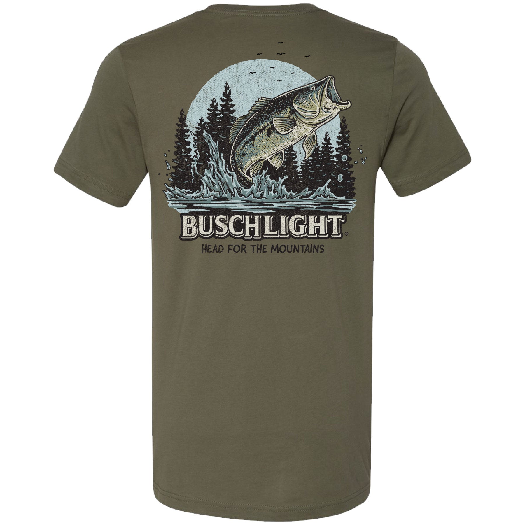 Represent your love for nature while enjoying a refreshing Busch Light with our Wildlife Bass Sunset Scene T-shirt. Featuring a beautiful bass sunset scene on the back and Busch Light logo on the left chest, this shirt is perfect for any outdoor enthusiast. Made with high-quality fabric, it offers comfort and durability for all your adventures. Officially licensed Busch Light® clothing & apparel.