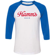 Introducing the Hamm's Logotype Raglan Three-Quarter Sleeve T-Shirt. With its unique design and comfortable fit, this shirt is perfect for any occasion. Made from high-quality materials, it guarantees durability and style. Represent your love for Hamm's with this must-have addition to your wardrobe. Officially licensed Hamm's® apparel.
