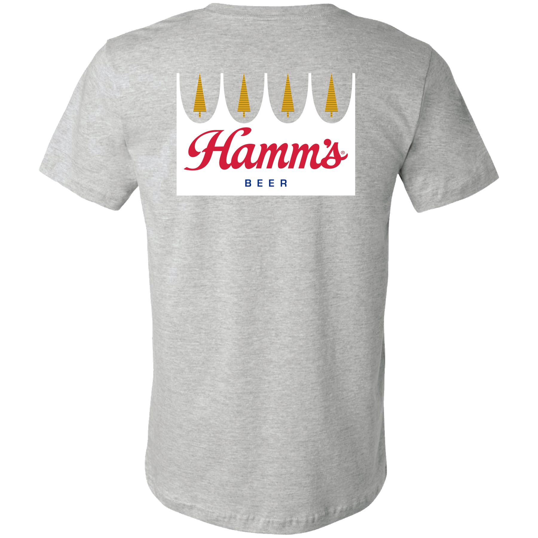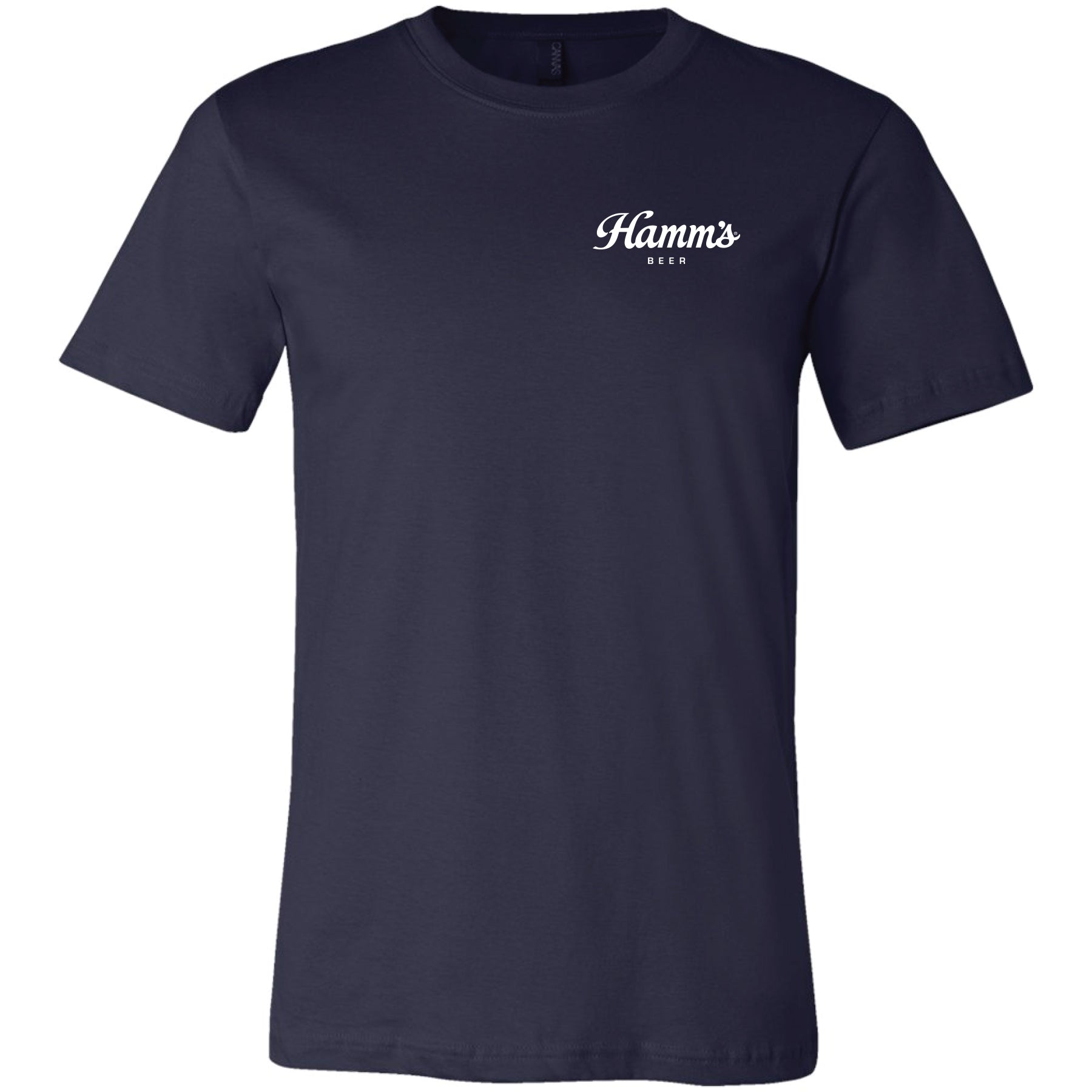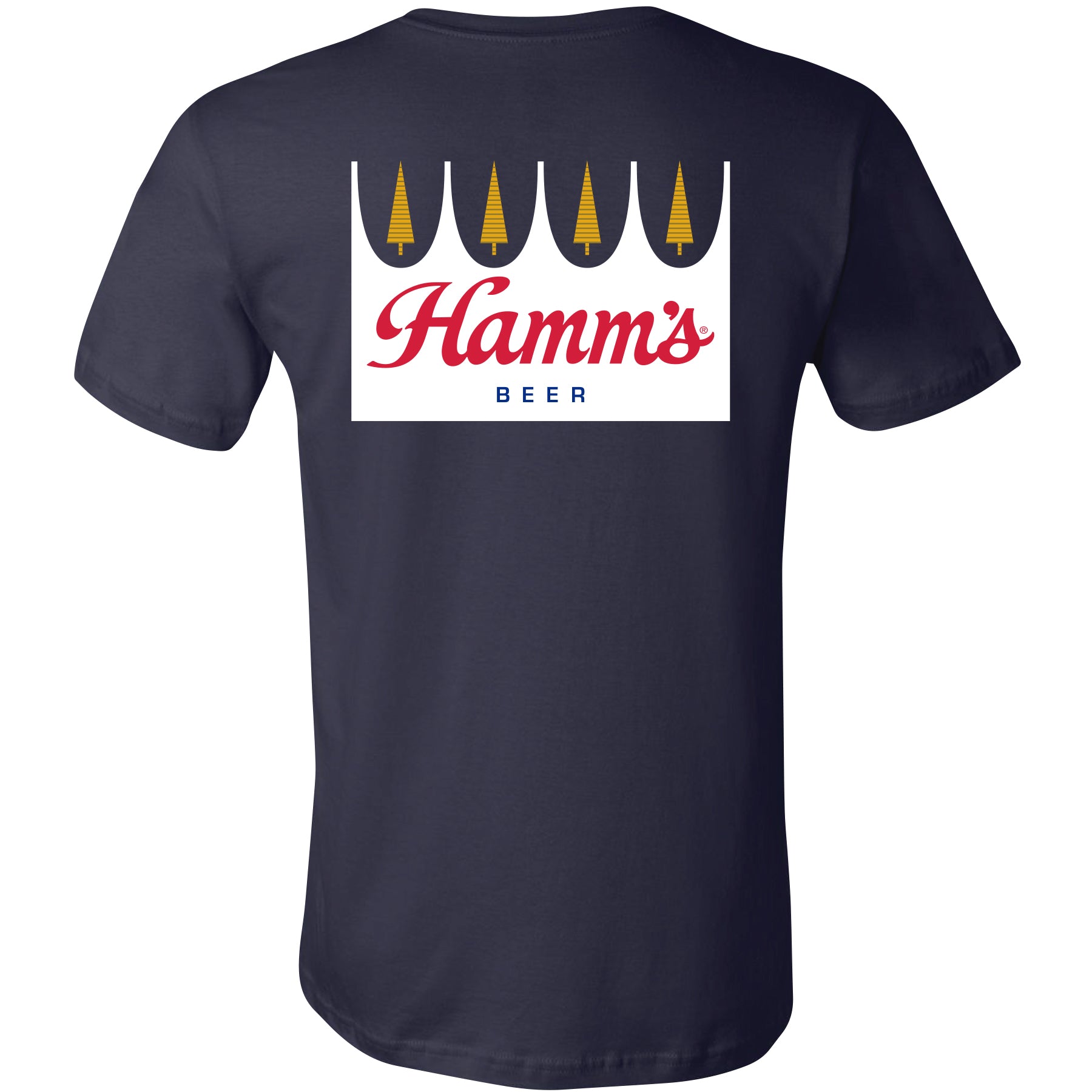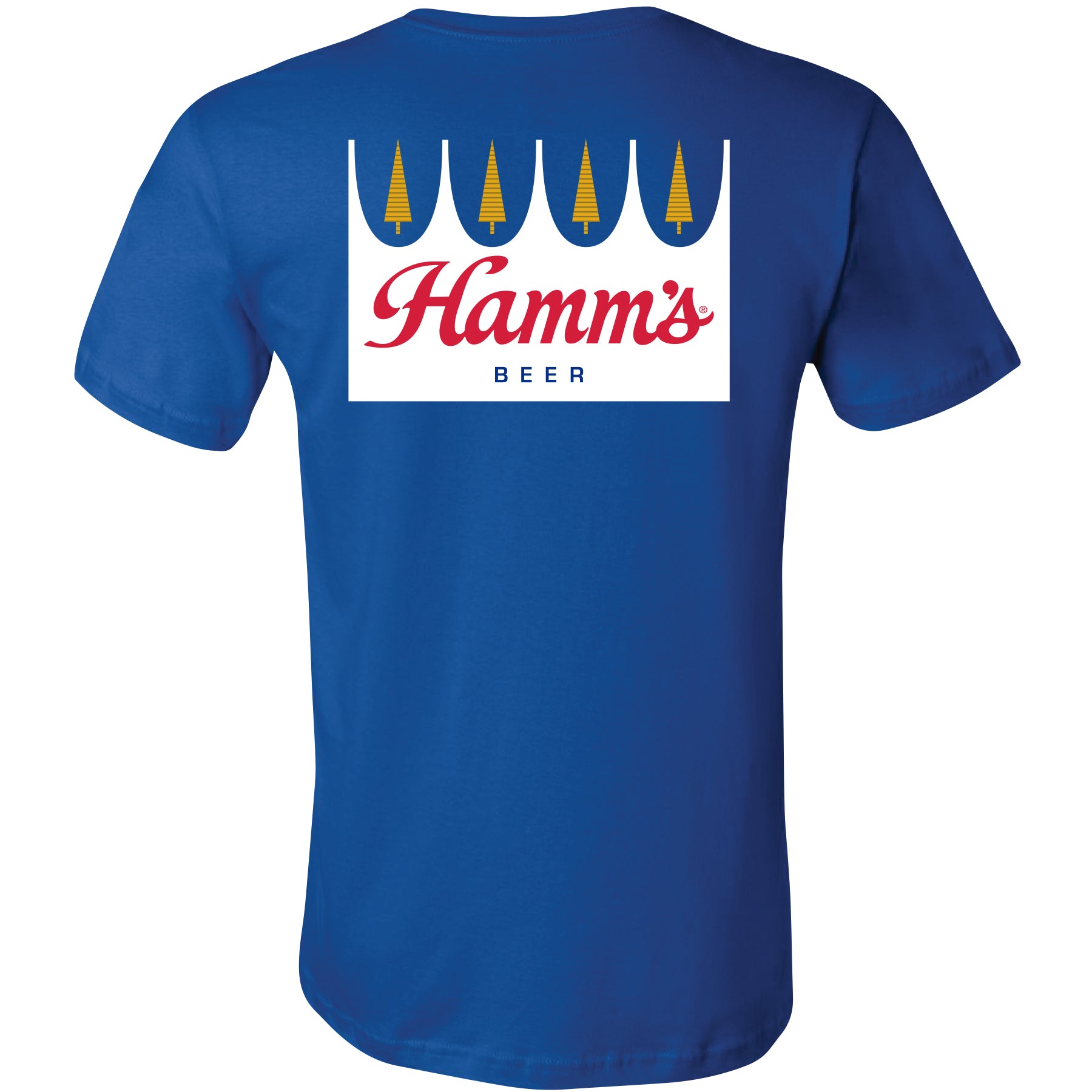 Hamm's Script Crown 2-Sided T-Shirt. The Hamm's Script Logo is featured on the left chest and the full Hamm's Crown Logo is on the back of the T-Shirt. Officially licensed Hamm's® apparel.