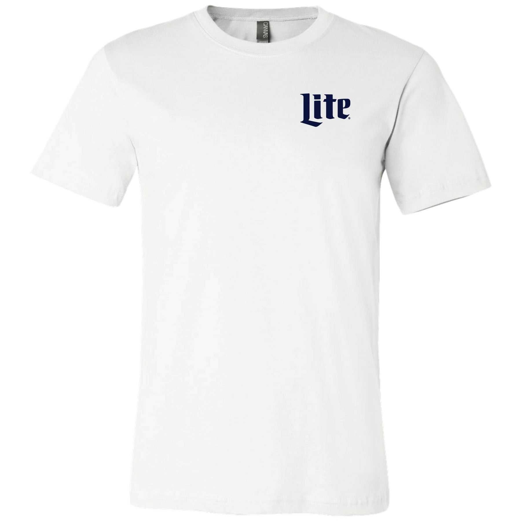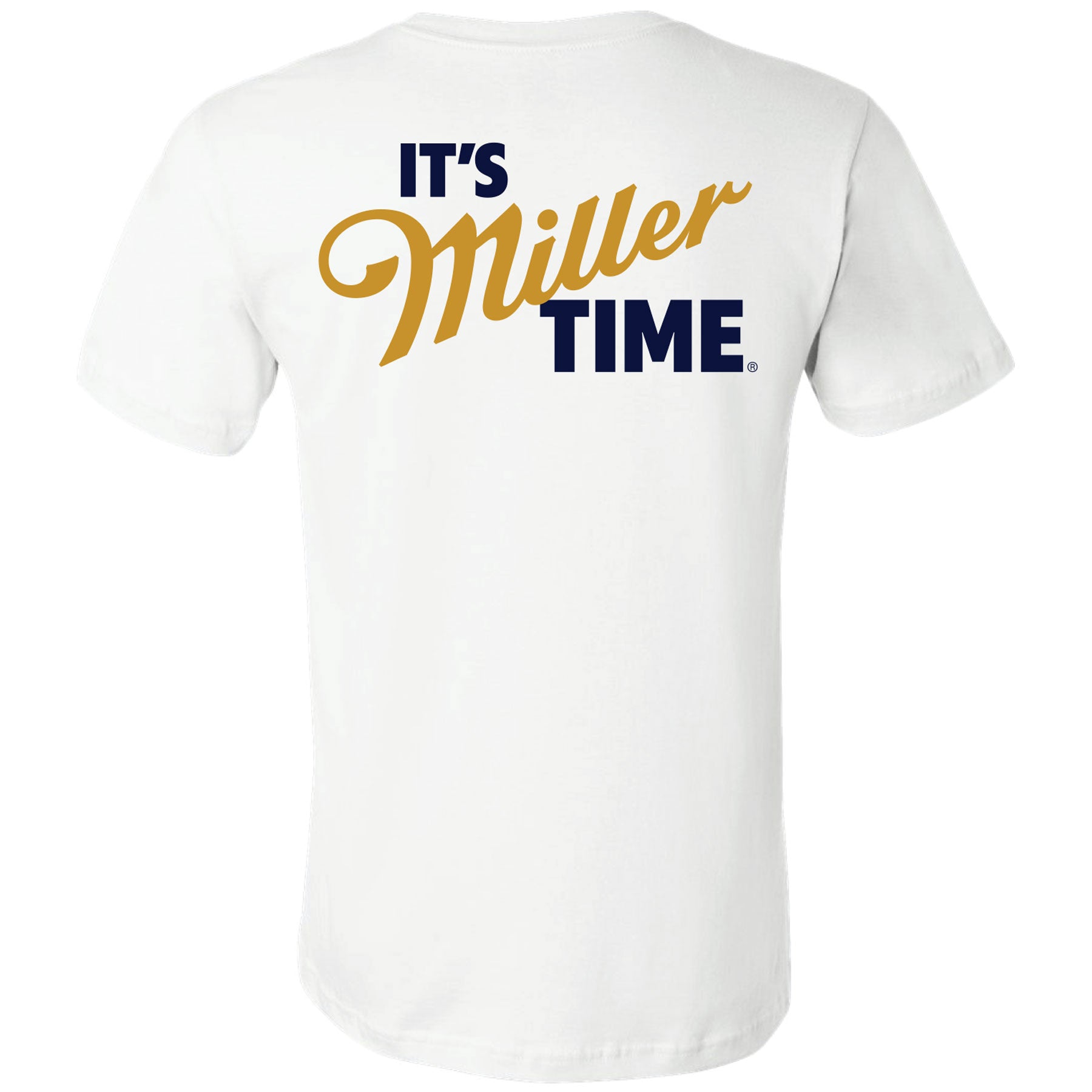 Stay stylish and comfortable with the Miller Lite 'It's Miller Time' T-shirt. This 2-sided shirt features the iconic Miller Lite logo on the front, while the back proudly displays Millers signature phrase, 'It's Miller Time'. Perfect for any fan of the classic beer, this shirt is a must-have for any casual occasion. Officially licensed Miller Lite® clothing, apparel & merch.