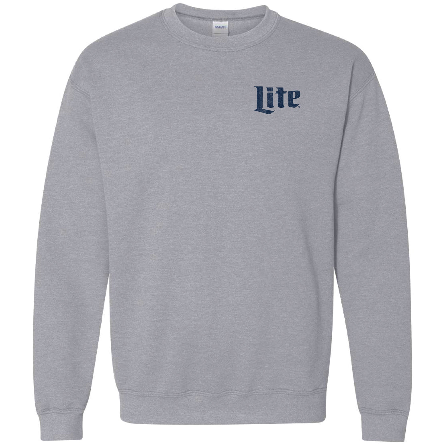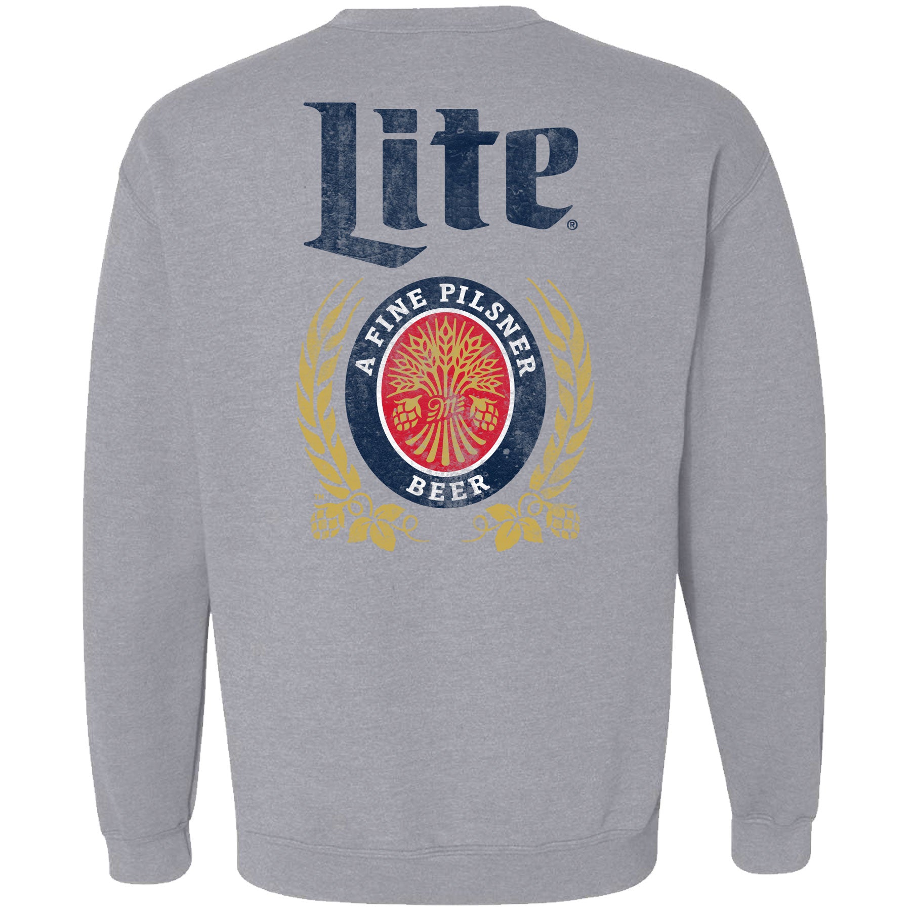 This Miller Lite Label 2-sided Crew sweatshirt is the perfect addition to any beer lover's wardrobe. It features the iconic Lite logo on the front left chest and the full Miller Lite Label logo on the back. Stay warm and stylish while representing your favorite beer brand. Officially licensed Miller Lite® clothing, apparel & merch.