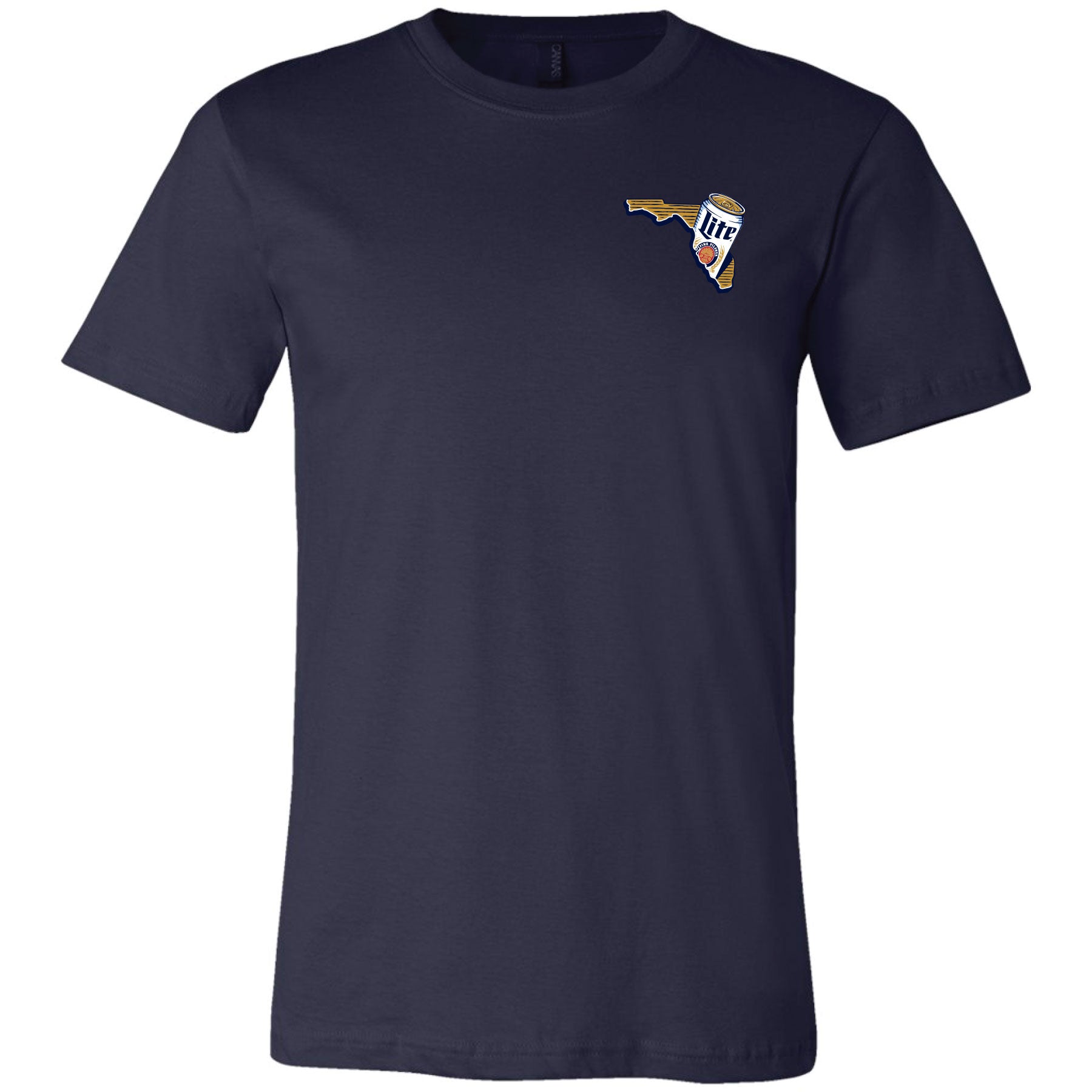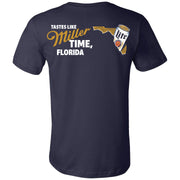 Show off your love for Miller Lite and your home state with this stylish t-shirt. The front features a unique design of a Miller Lite can within the shape of Florida, while the back boasts the slogan 'Tastes Like Miller Time'. Made with high-quality materials and a comfortable fit, this shirt is perfect for any beer enthusiast. Officially licensed Miller Lite® clothing, apparel & merch.