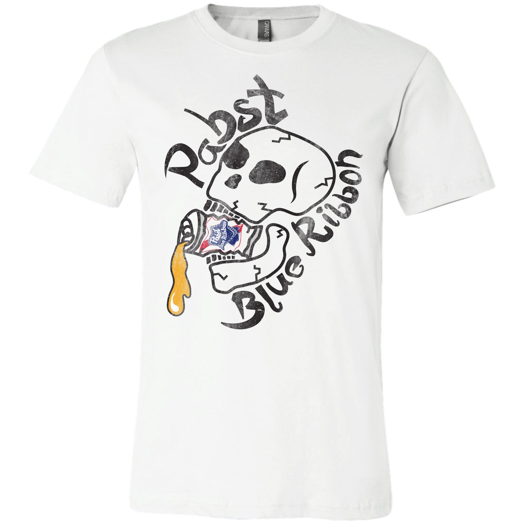 Show off your love for Pabst Blue Ribbon with our Skull Crushed Can T-shirt. Featuring a unique design, this shirt is perfect for both PBR fans and fashion enthusiasts. With its soft fabric and comfortable fit, you'll want to wear it every day. Get yours now! Officially licensed Pabst Blue Ribbon® clothing & apparel.