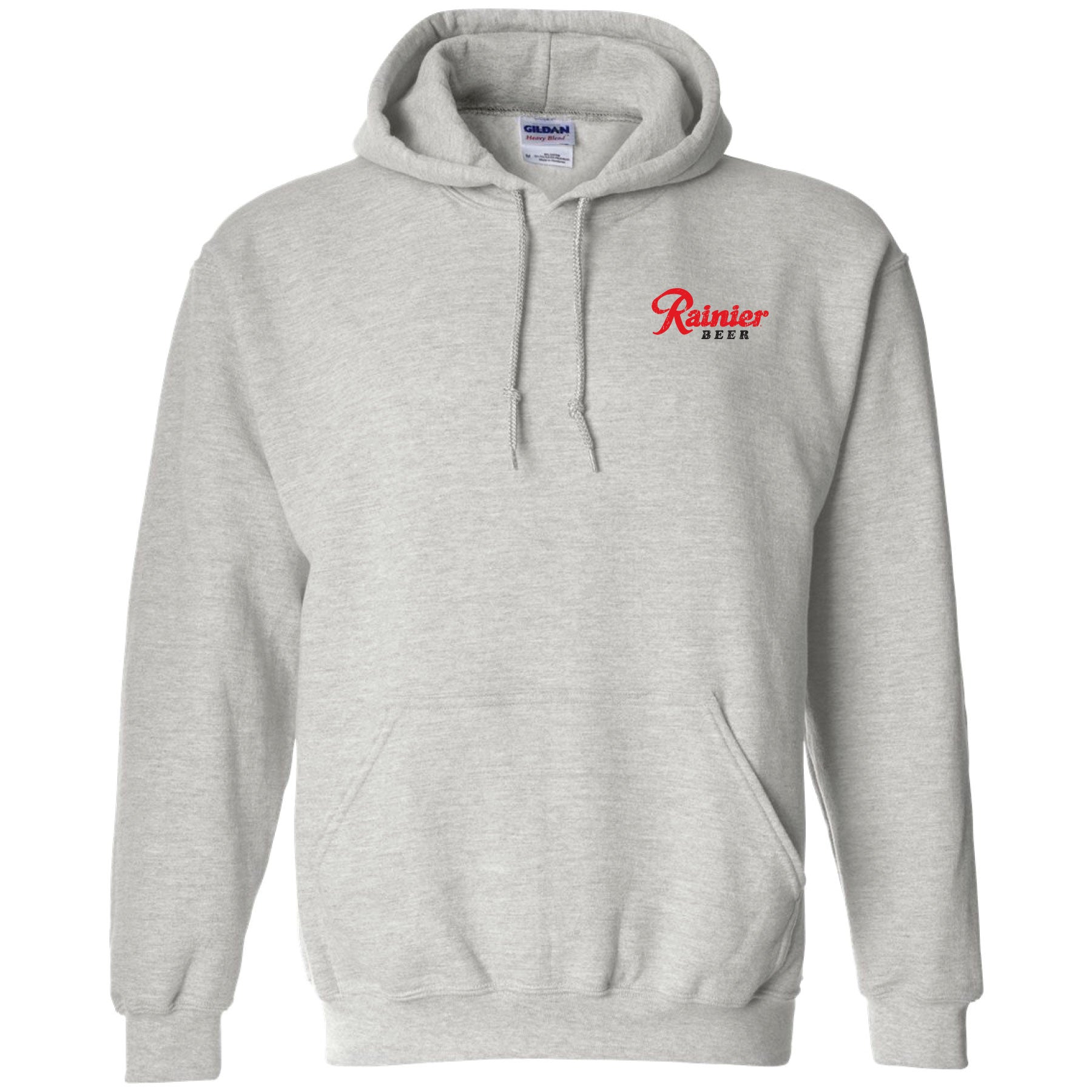 Introducing the Rainier Beer Mountain Fresh 2-Sided Hoodie. Made with premium quality fabric and designed to showcase the iconic Rainier logo, this hooded sweatshirt is a must-have for any beer lover. With its comfortable fit and striking design, it's perfect for wearing to your next mountain adventure or casual outing with friends. Show your love for Rainier and enjoy the crisp, refreshing taste of the Pacific Northwest with every sip. Officially licensed Rainier® clothing & apparel.