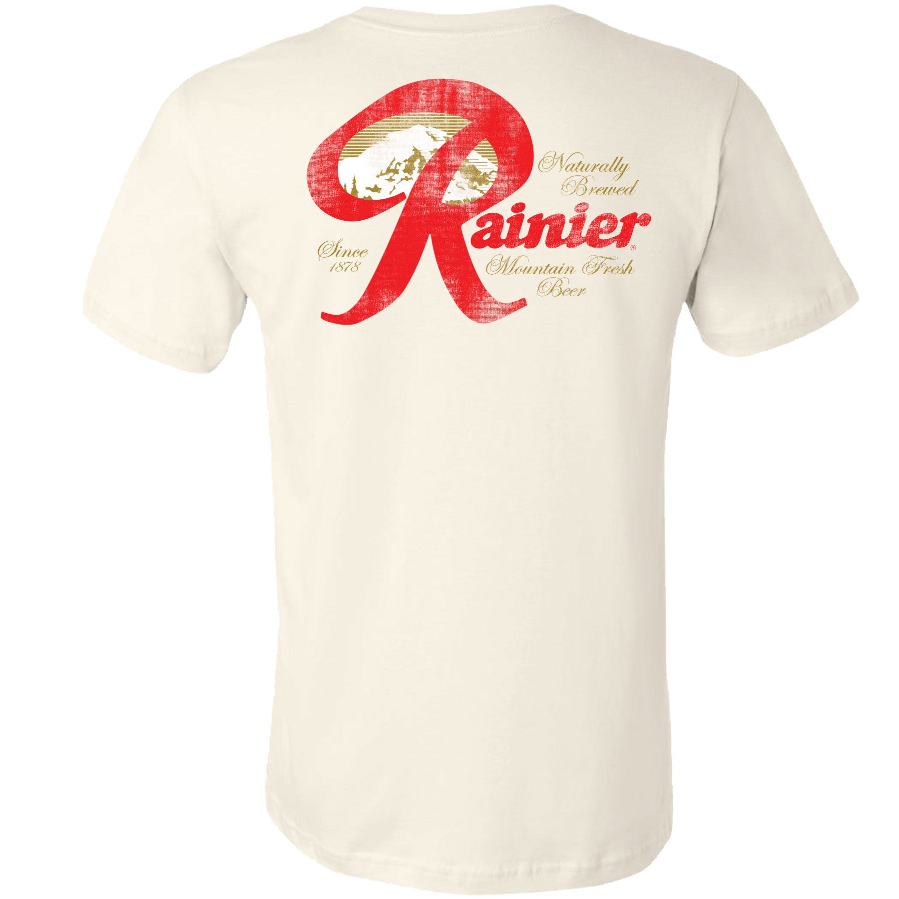 Introducing the Rainier Beer Mountain Fresh 2-Sided T-shirt. Made with premium quality fabric and designed to showcase the iconic Rainier logo, this shirt is a must-have for any beer lover. With its comfortable fit and striking design, it's perfect for wearing to your next mountain adventure or casual outing with friends. Show your love for Rainier and enjoy the crisp, refreshing taste of the Pacific Northwest with every sip. Officially licensed Rainier® clothing & apparel.