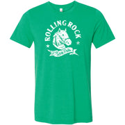 Rolling Rock Pale Ale Horse Logo on the front of the T-Shirt. The number 33 from the Rolling Rock Label is featured on the back of the T-Shirt. There are several Legends surrounding the meaning of the number. Officially licensed Rolling Rock® clothing & apparel.