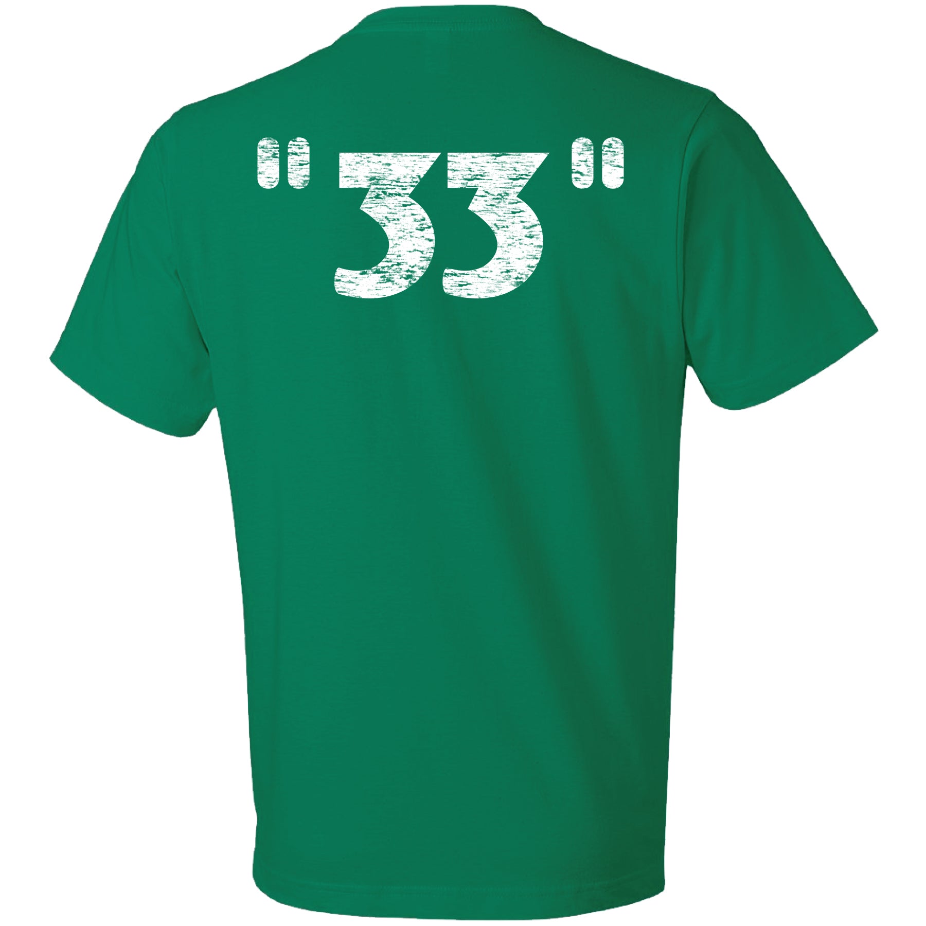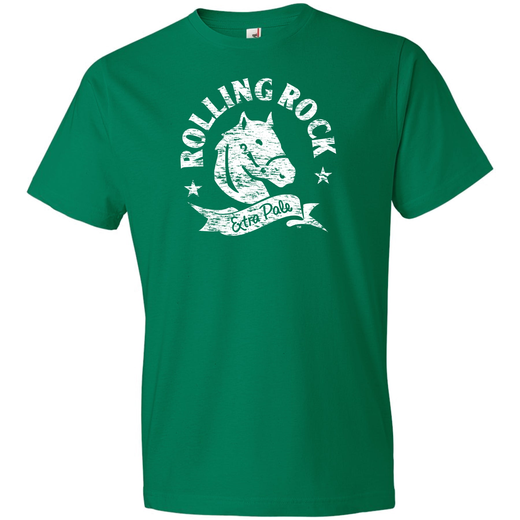 Rolling Rock Pale Ale Horse Logo on the front of the T-Shirt. The number 33 from the Rolling Rock Label is featured on the back of the T-Shirt. There are several Legends surrounding the meaning of the number. Officially licensed Rolling Rock® clothing & apparel.