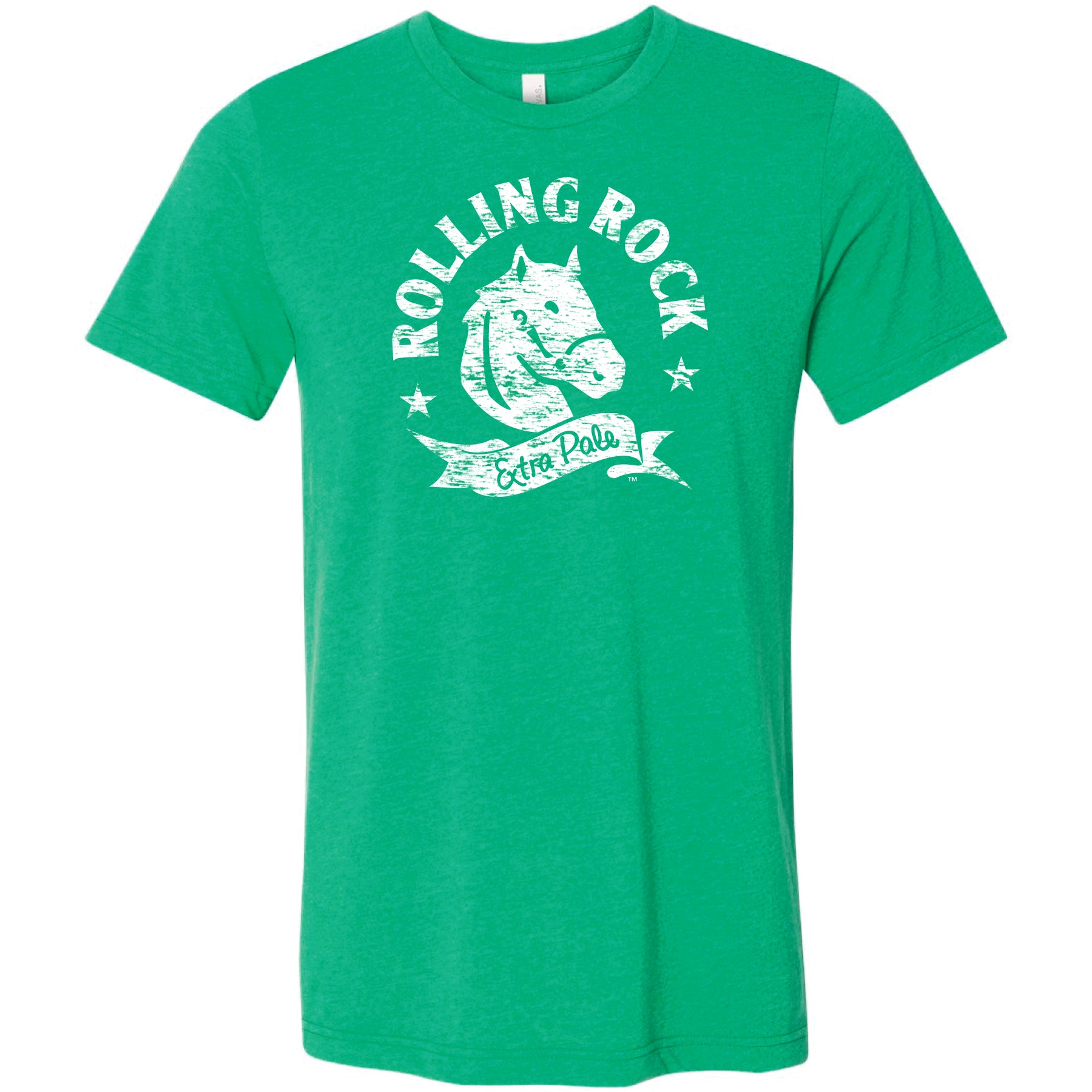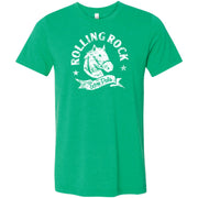 This t-shirt showcases Rolling Rock's iconic Horse Logo with a distressed aesthetic, making it a must-have for any beer enthusiast. Experience the perfect blend of style and comfort with this high-quality shirt, designed to elevate your wardrobe and showcase your love for Rolling Rock's Extra Pale Ale. Officially licensed Rolling Rock® clothing & apparel.
