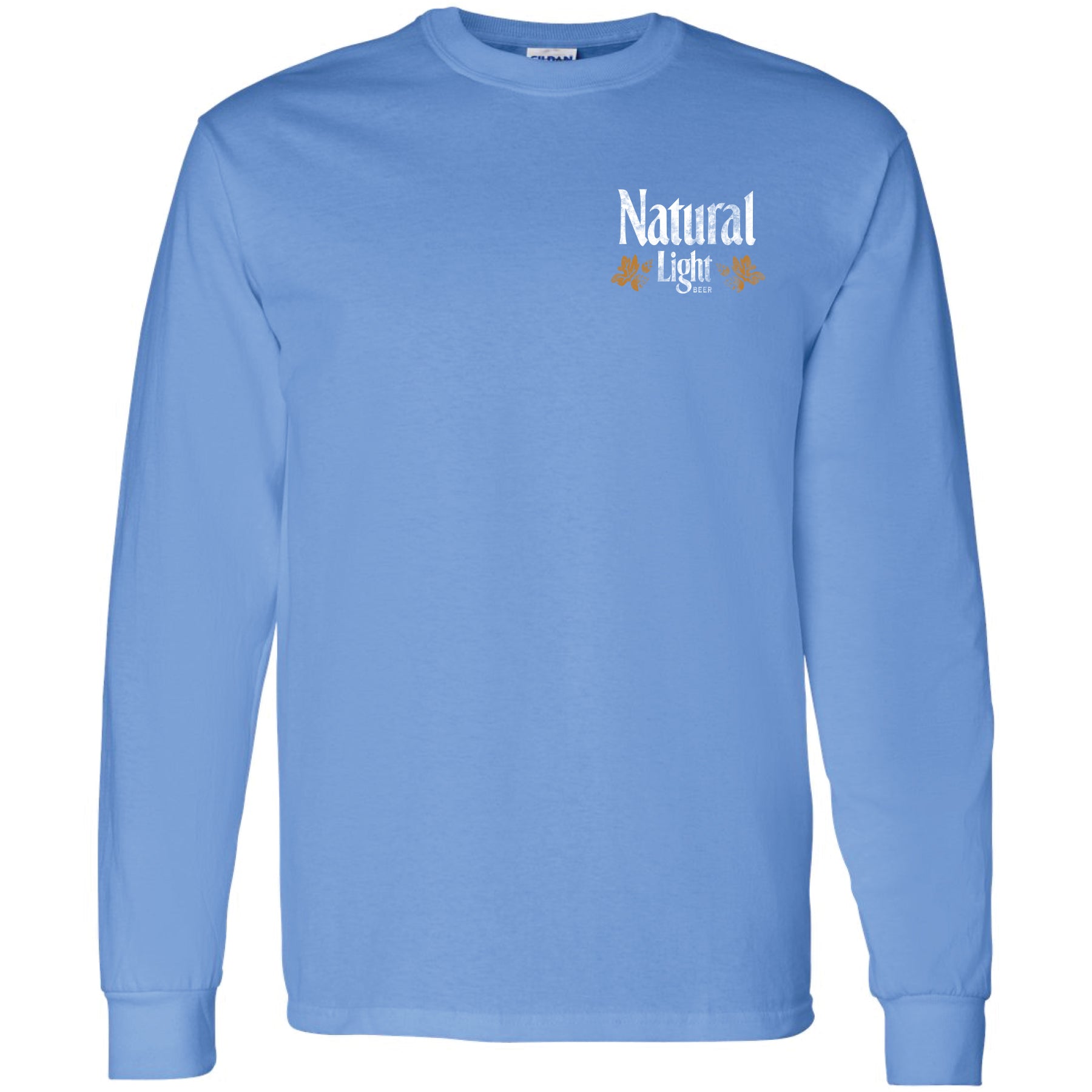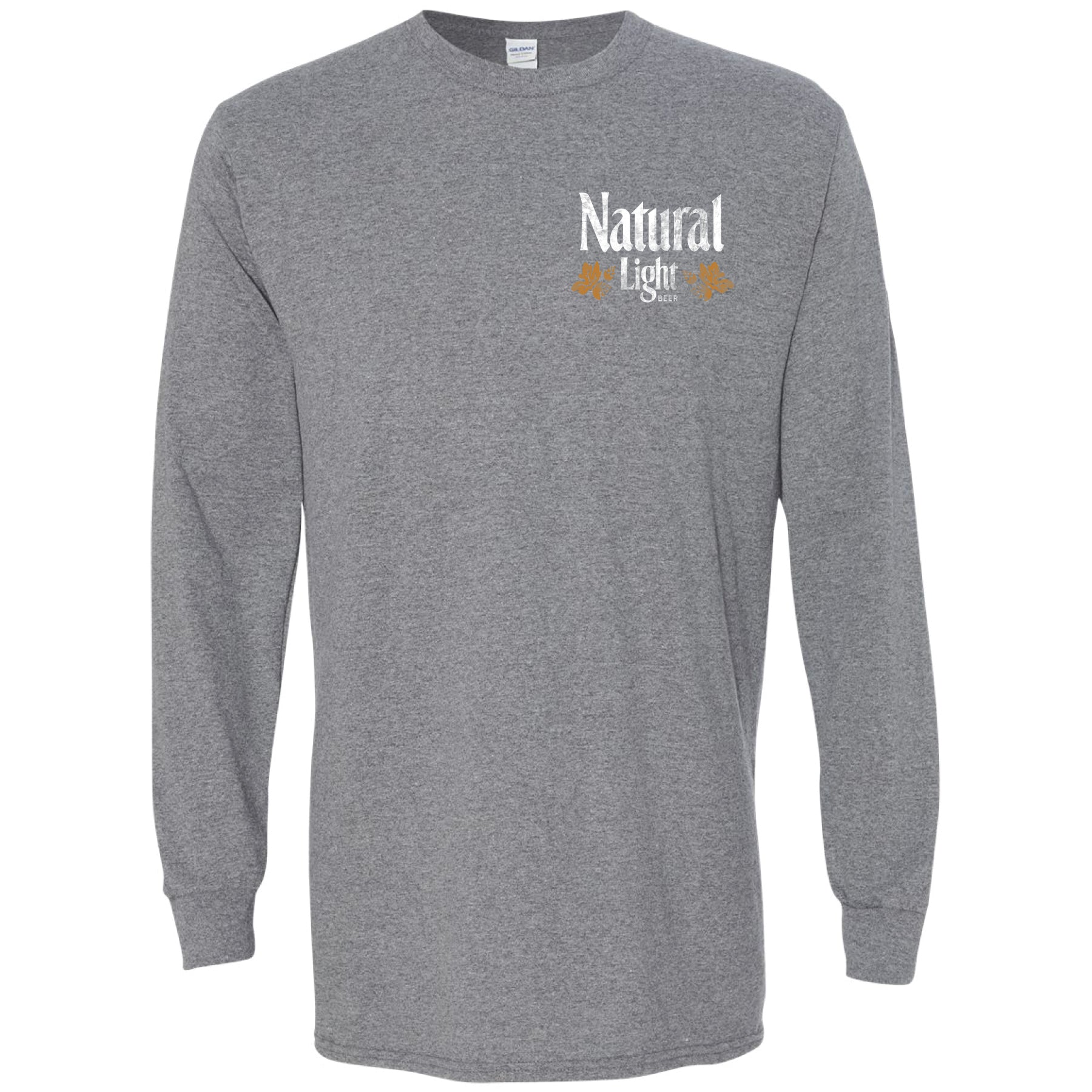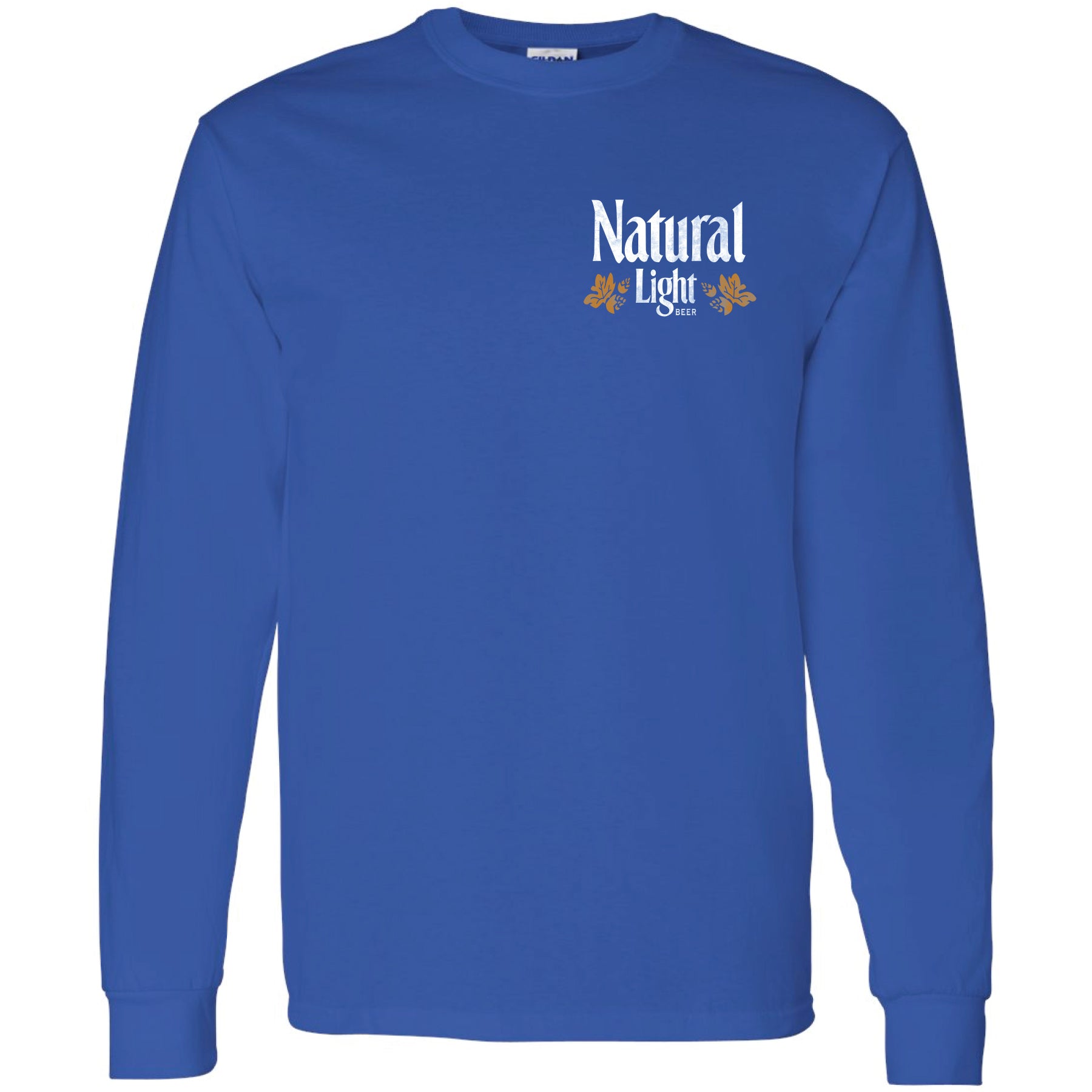 Natural Light Vintage Logo/Label 2-Sided Long Sleeve T-Shirt. The left chest features the Vintage Natural Light Logo and the Vintage Natural Light Label appears on the back of the T-Shirt. Officially licensed Natural Light® clothing & apparel.