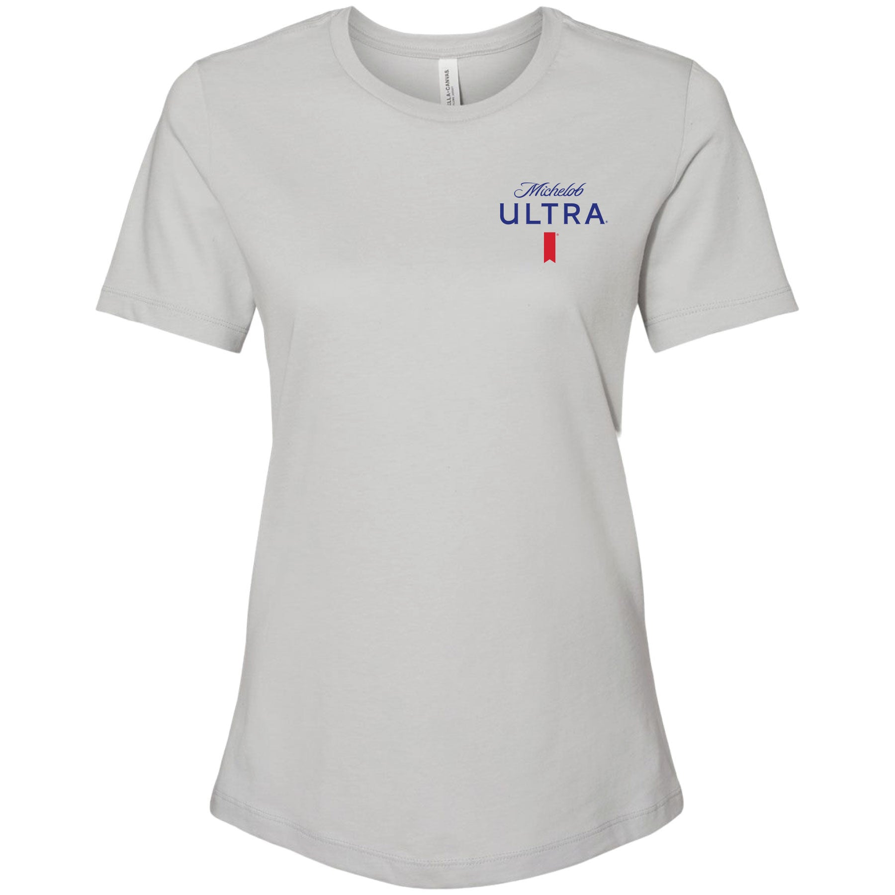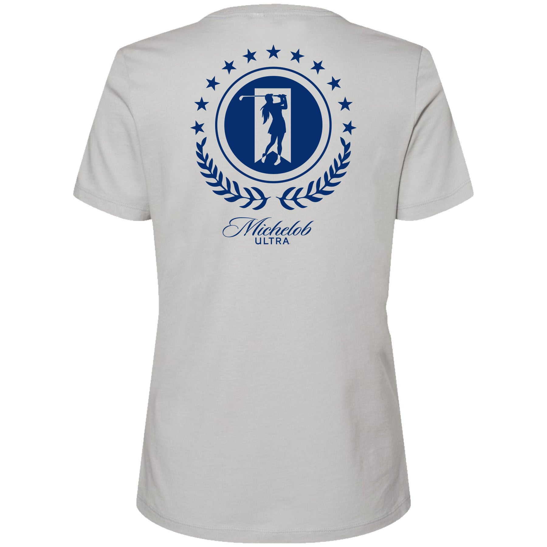 This Michelob Ultra 2-sided T-Shirt is perfect for the ladies golfer and beer enthusiast. Featuring a logo on the front and a golf-inspired design on the back, this stylish T-Shirt is sure to be a hit. Quality-made and comfortable to wear, it's sure to become a favorite. Officially licensed Michelob Ultra® clothing & apparel.