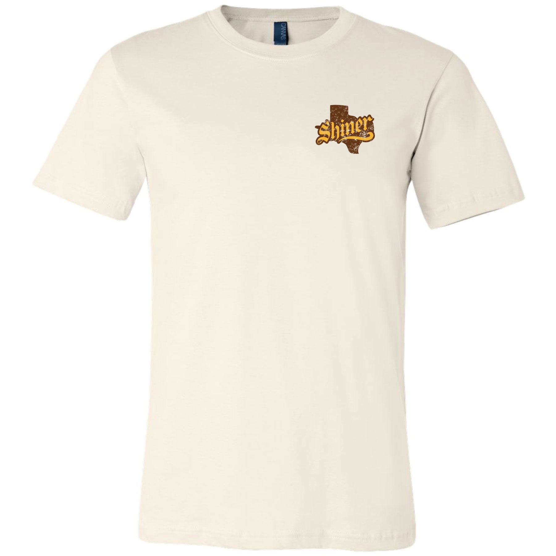 Rock your beer pride with this Shiner Bock crushed can graphic tee. Featuring bold, two-sided artwork celebrating the iconic Texas brewery, this shirt delivers comfort and style for any occasion. Perfect for collectors, enthusiasts, or anyone who appreciates quality craft beer culture. The distressed crushed can design captures the essence of enjoying an ice-cold Shiner Bock, making it an essential addition to your beer gear collection. Officially licensed Shiner Bock® clothing & apparel.