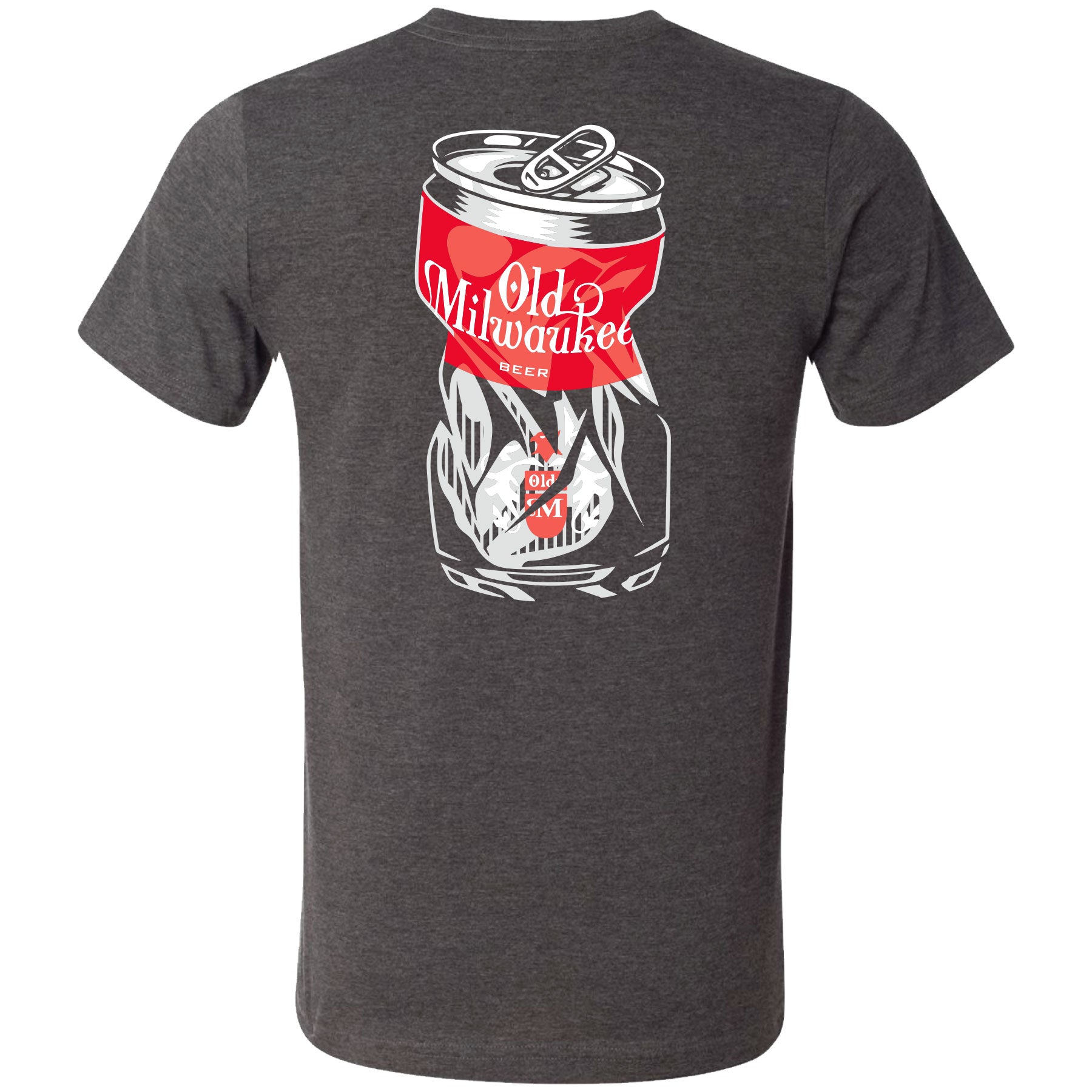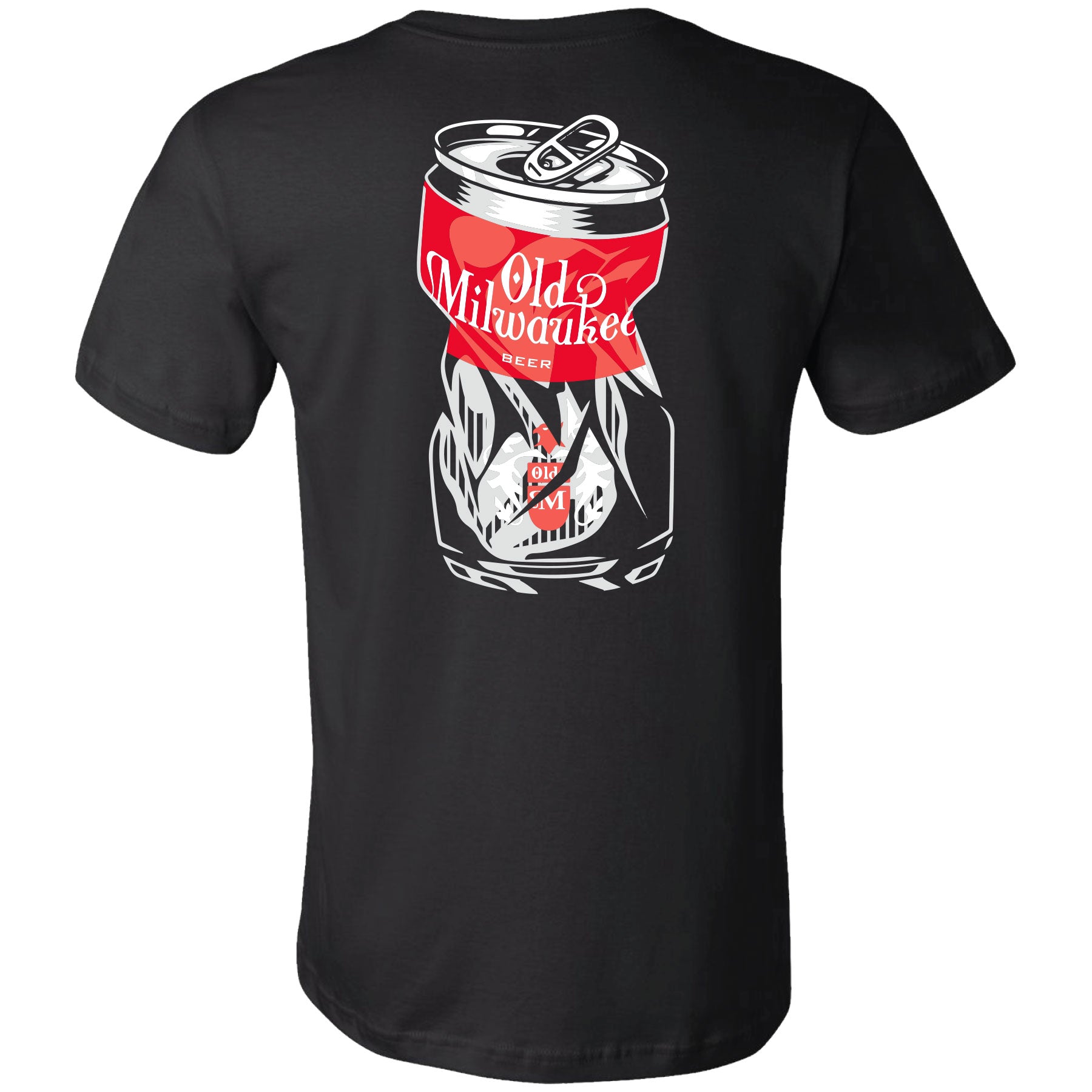 Celebrate classic beer culture with the Old Milwaukee Crushed Can 2-sided T-shirt. Featuring a detailed graphic of a crushed Old Milwaukee can on the back and the Old Milwaukee crest on the left chest, this shirt offers a bold nod to the iconic brand. Its design captures the casual, authentic vibe of beer lovers who appreciate tradition and style. Perfect for everyday wear, it blends comfort with a distinctive look that stands out at social gatherings or relaxed outings. Officially licensed Old Milwaukee® clothing & apparel
