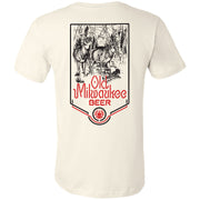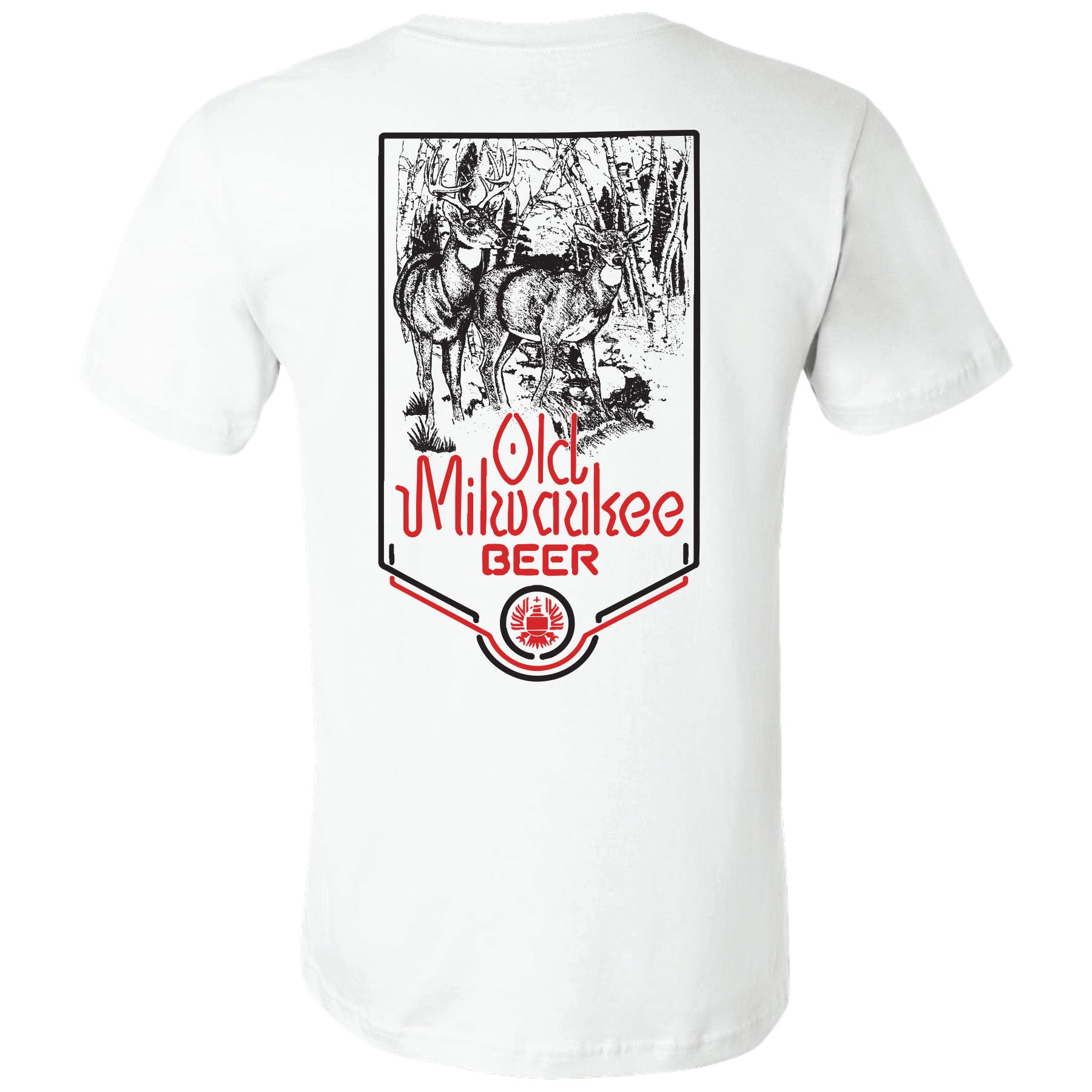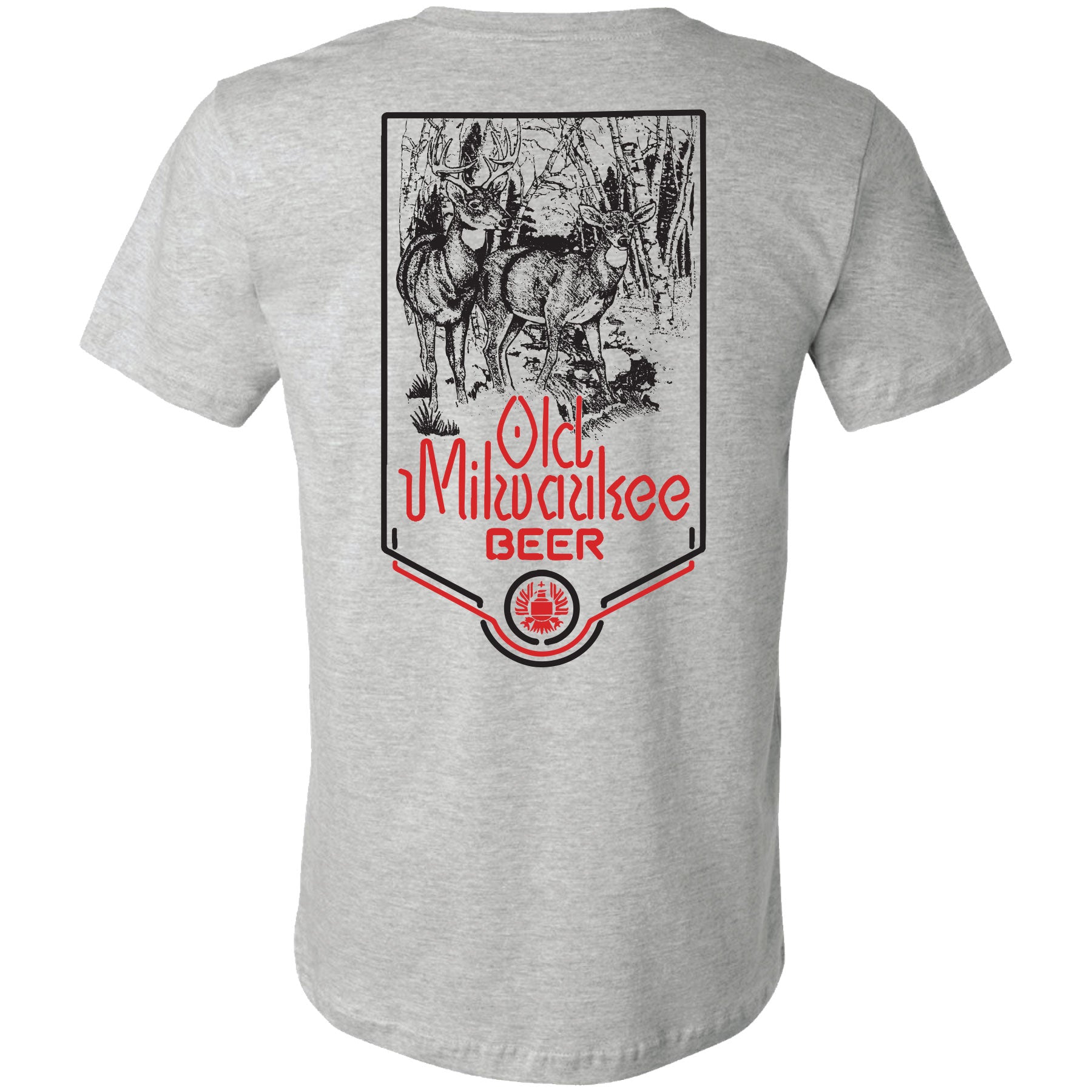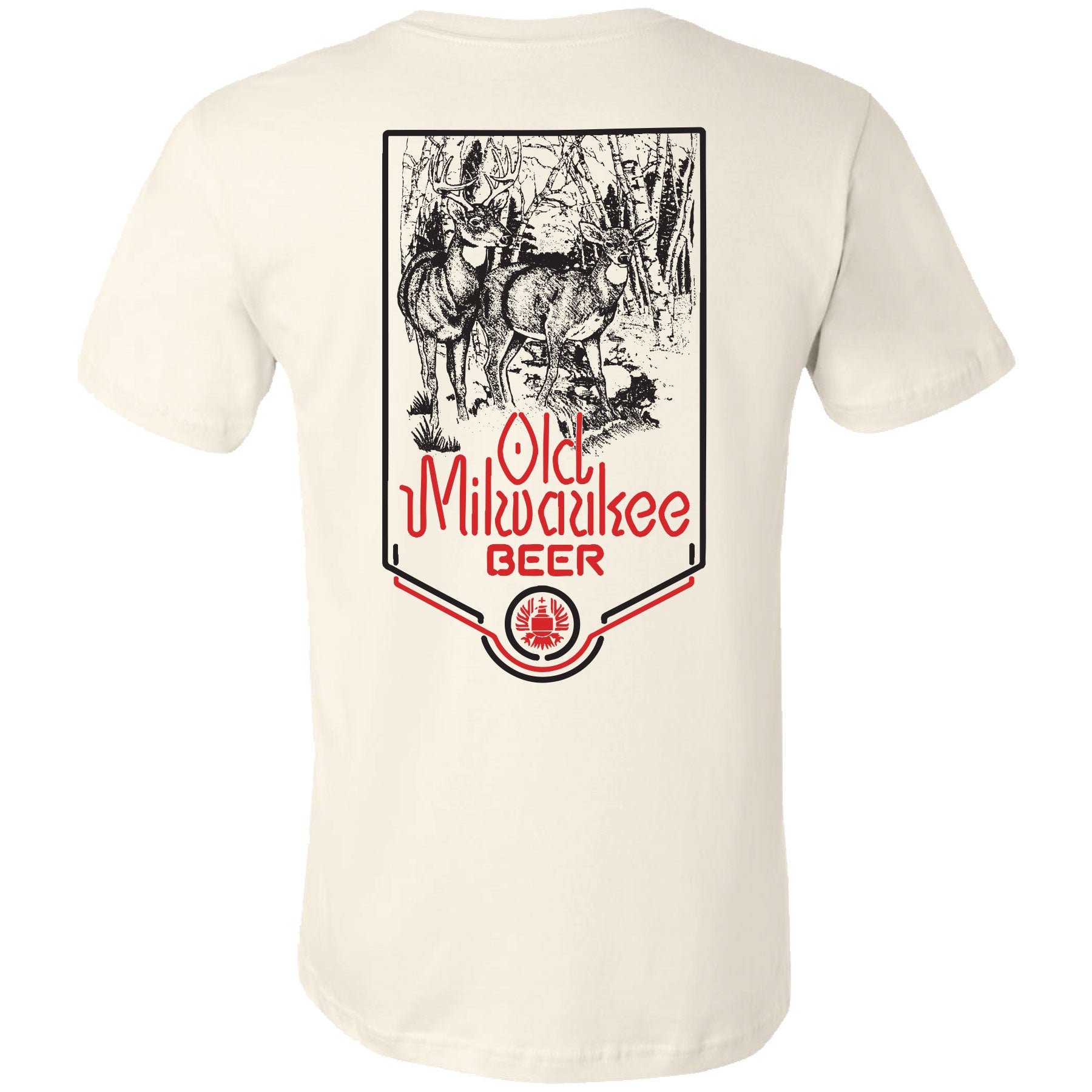 The Old Milwaukee Hunting Vintage Wildlife Deer T-shirt features a classic crest logo on the left chest and a detailed vintage deer design on the back. Crafted for enthusiasts who appreciate timeless wildlife motifs, this two-sided shirt combines heritage branding with rugged outdoor style, perfect for hunting fans or nature lovers seeking authentic apparel. Officially licensed Old Milwaukee® clothing & apparel